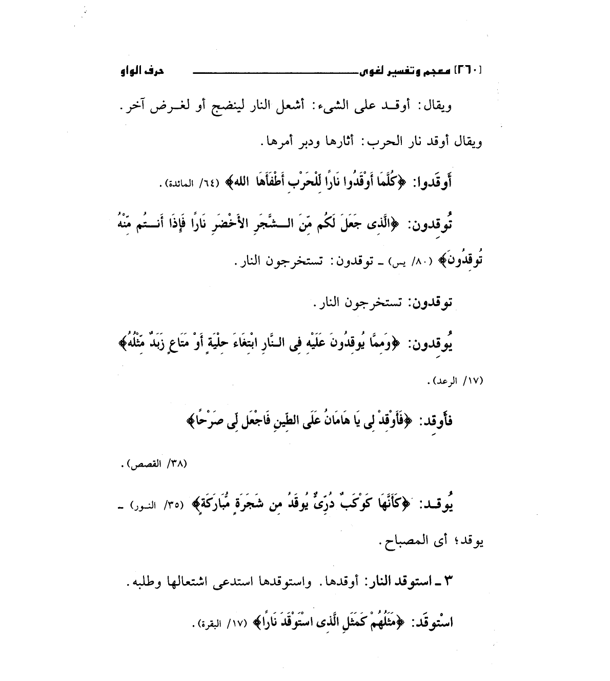 3 - استوقد النار: أوقدها. واستوقدها استدعي اشتعالها وطلبه استوقد: (مَثَلُهُمْ كَمَثَلِ الَّذِي اسْتَوْقَدَ نَاراً) " 17/البقرة".