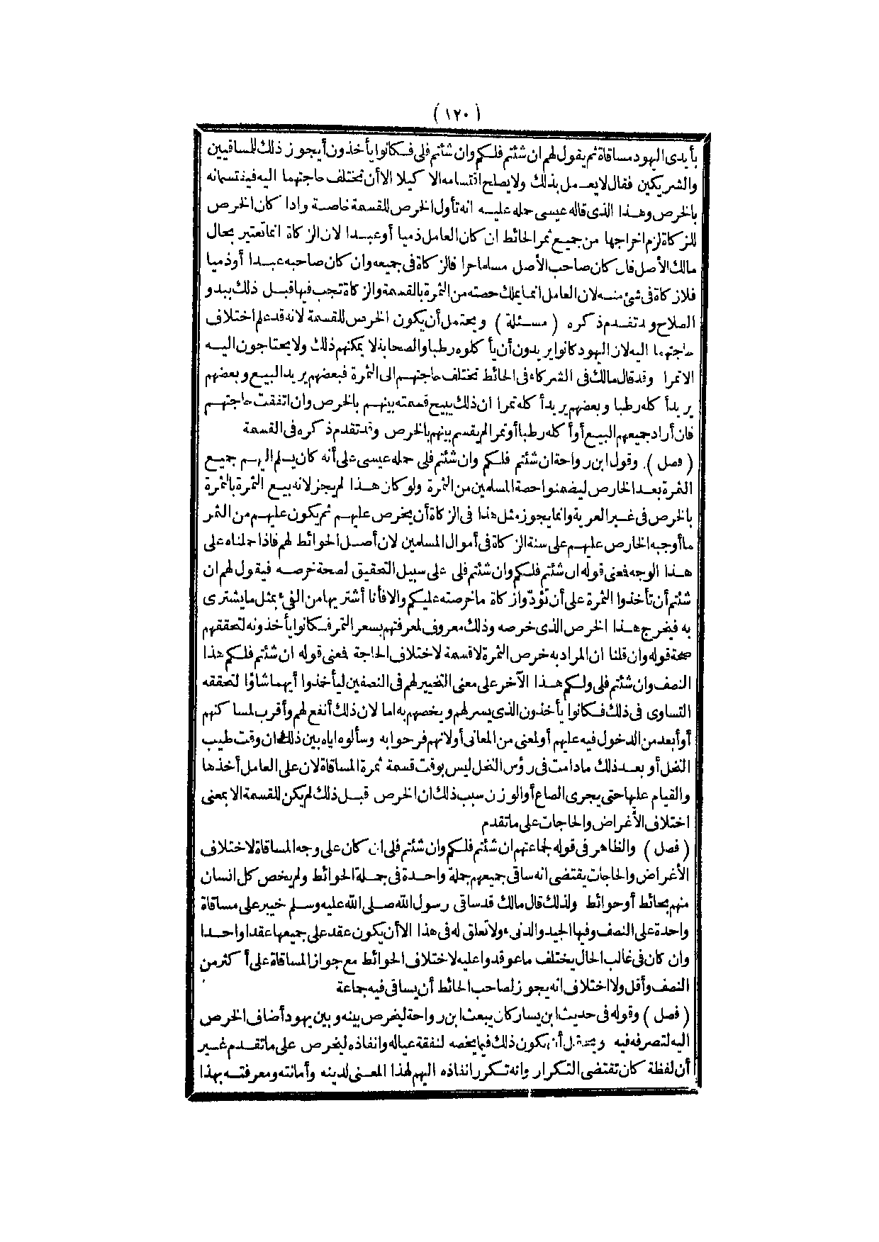 ـــــــــــــــــــــــــــــQبِأَيْدِي الْيَهُودِ مُسَاقَاةً ثُمَّ يَقُولُ لَهُمْ إنْ شِئْتُمْ فَلَكُمْ وَإِنْ شِئْتُمْ فَلِي فَكَانُوا يَأْخُذُونَ» أَيَجُوزُ ذَلِكَ لِلْمُسَاقِيَيْنِ وَالشَّرِيكَيْنِ فَقَالَ لَا يُعْمَلُ بِذَلِكَ، وَلَا يَصْلُحُ اقْتِسَامُهُ إلَّا كَيْلًا إلَّا أَنْ تَخْتَلِفَ حَاجَتُهُمَا إلَيْهِ فَيَقْتَسِمَانِهِ بِالْخَرْصِ، وَهَذَا الَّذِي قَالَهُ عِيسَى حَمَلَهُ عَلَيْهِ أَنَّهُ تَأَوَّلَ الْخَرْصَ لِلْقِسْمَةِ خَاصَّةً، وَإِذَا كَانَ الْخَرْصُ لِلزَّكَاةِ لَزِمَ إخْرَاجُهَا مِنْ جَمِيعِ ثَمَرِ الْحَائِطِ إنْ كَانَ الْعَامِلُ ذِمِّيًّا أَوْ عَبْدًا لِأَنَّ الزَّكَاةَ إنَّمَا تُعْتَبَرُ بِحَالِ مَالِكِ الْأَصْلِ فَإِنْ كَانَ صَاحِبُ الْأَصْلِ مُسْلِمًا حُرًّا فَالزَّكَاةُ فِي جَمِيعِهِ، وَإِنْ كَانَ صَاحِبُهُ عَبْدًا أَوْ ذِمِّيًّا فَلَا زَكَاةَ فِي شَيْءٍ مِنْهُ لِأَنَّ الْعَامِلَ إنَّمَا يَمْلِكُ حِصَّتَهُ مِنْ الثَّمَرَةِ بِالْقِسْمَةِ، وَالزَّكَاةُ تَجِبُ فِيهَا قَبْلَ ذَلِكَ بِبُدُوِّ الصَّلَاحِ، وَقَدْ تَقَدَّمَ ذِكْرُهُ.