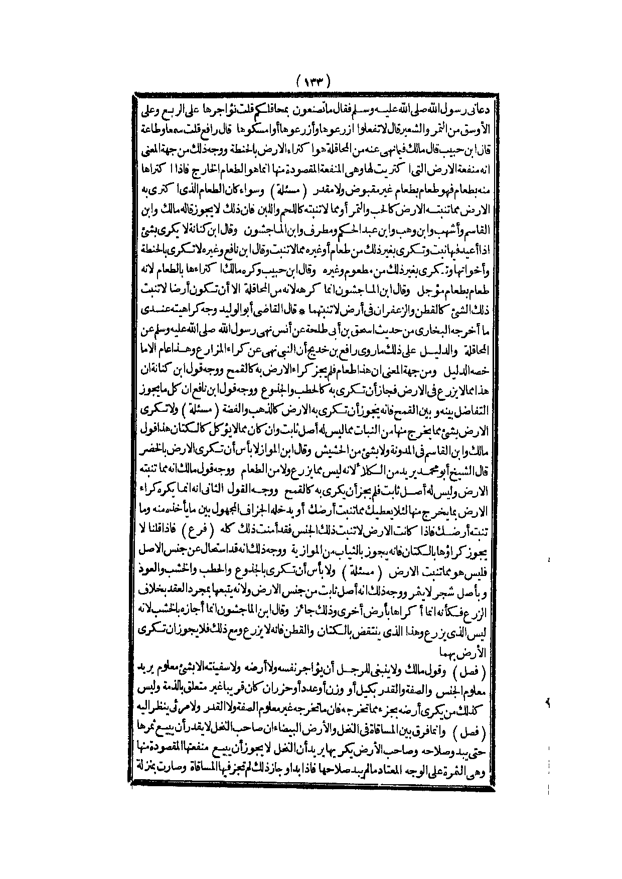 ـــــــــــــــــــــــــــــQدَعَانِي رَسُولُ اللَّهِ - صَلَّى اللَّهُ عَلَيْهِ وَسَلَّمَ - فَقَالَ مَا تَصْنَعُونَ بِمَحَاقِلِكُمْ قُلْتُ نُؤَاجِرُهَا عَلَى الرُّبْعِ، وَعَلَى الْأَوْسُقِ مِنْ التَّمْرِ وَالشَّعِيرِ قَالَ لَا تَفْعَلُوا ازْرَعُوهَا وَأَزْرِعُوهَا أَوْ أَمْسِكُوهَا قَالَ رَافِعٌ قُلْت سَمْعًا وَطَاعَةً» قَالَ ابْنُ حَبِيبٍ قَالَ مَالِكٌ فِيمَا نُهِيَ عَنْهُ مِنْ الْمُحَاقَلَةِ هُوَ اكْتِرَاءُ الْأَرْضِ بِالْحِنْطَةِ، وَوَجْهُ ذَلِكَ مِنْ جِهَةِ الْمَعْنَى أَنَّهُ مَنْفَعَةُ الْأَرْضِ الَّتِي اُكْتُرِيَتْ لَهَا، وَهِيَ الْمَنْفَعَةُ الْمَقْصُودَةُ مِنْهَا إنَّمَا هُوَ الطَّعَامُ الْخَارِجُ فَإِذَا اكْتَرَاهَا مِنْهُ بِطَعَامٍ فَهُوَ طَعَامٌ بِطَعَامٍ غَيْرِ مَقْبُوضٍ، وَلَا مُقَدَّرٍ.