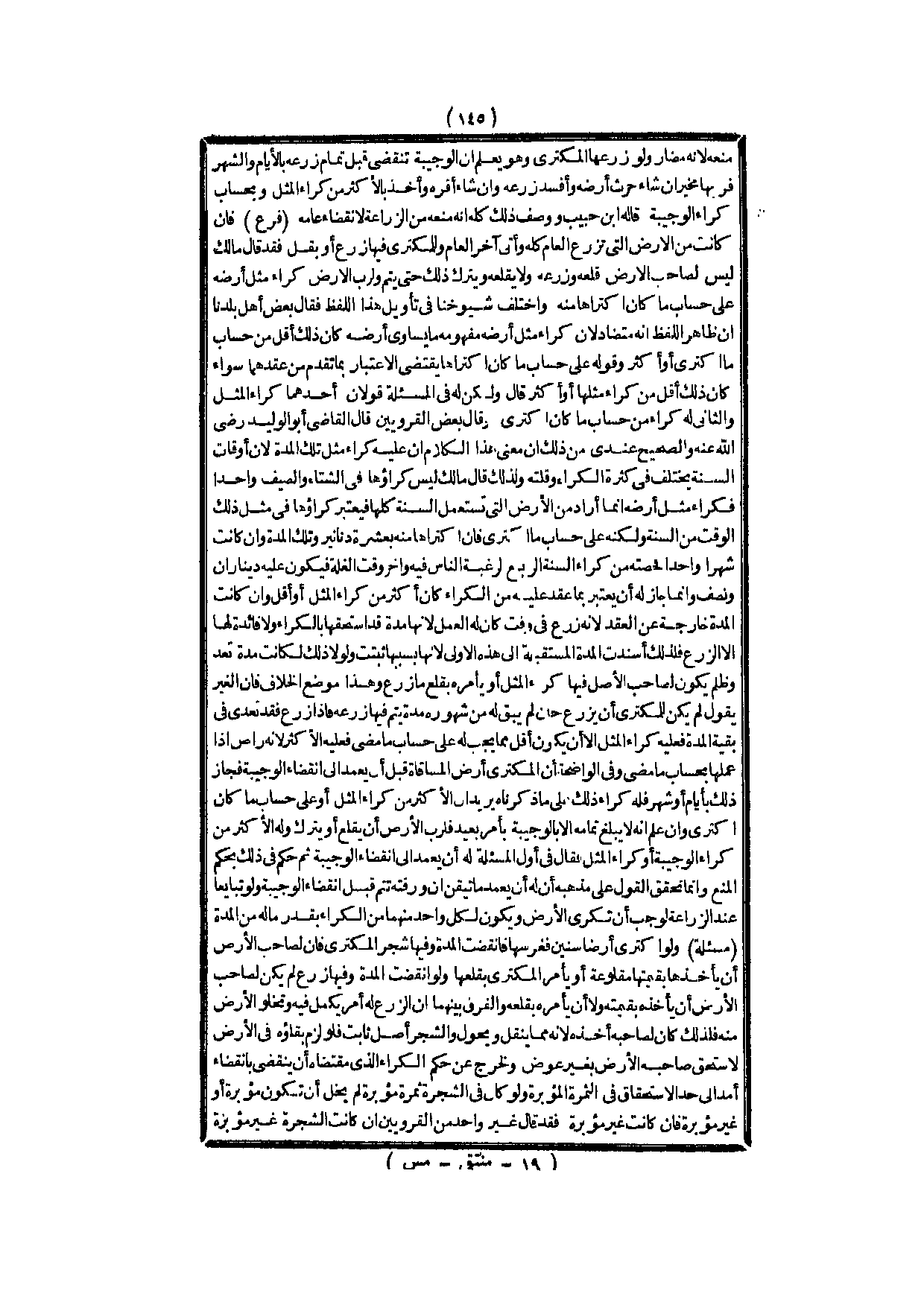 وَقَالَ بَعْضُ الْقَرَوِيِّينَ: قَالَ الْقَاضِي أَبُو الْوَلِيدِ - رَضِيَ اللَّهُ عَنْهُ - وَالصَّحِيحُ عِنْدِي مِنْ ذَلِكَ أَنَّ مَعْنَى هَذَا الْكَلَامِ أَنَّ عَلَيْهِ كِرَاءَ مِثْلِ تِلْكَ الْمُدَّةِ؛ لِأَنَّ أَوْقَاتَ السَّنَةِ يَخْتَلِفُ فِي كَثْرَةِ الْكِرَاءِ وَقِلَّتِهِ؛ وَلِذَلِكَ قَالَ مَالِكٌ لَيْسَ كِرَاؤُهَا فِي الشِّتَاءِ، وَالصَّيْفِ وَاحِدًا فَكِرَاءُ مِثْلِ أَرْضِهِ إنَّمَا أَرَادَ مِنْ الْأَرْضِ الَّتِي تُسْتَعْمَلُ السَّنَةَ كُلَّهَا فَيُعْتَبَرُ كِرَاؤُهَا فِي مِثْلِ ذَلِكَ الْوَقْتِ مِنْ السَّنَةِ وَلَكِنَّهُ عَلَى حِسَابِ مَا اكْتَرَى فَإِنْ اكْتَرَاهَا مِنْهُ بِعَشَرَةِ دَنَانِيرَ، وَتِلْكَ الْمُدَّةُ وَإِنْ كَانَتْ شَهْرًا وَاحِدًا فَحِصَّتُهُ مِنْ كِرَاءِ السَّنَةِ الرُّبْعُ لِرَغْبَةِ النَّاسِ فِيهِ وَآخِرُ وَقْتِ الْغَلَّةِ فَيَكُونُ عَلَيْهِ دِينَارَانِ وَنِصْفُ وَإِنَّمَا جَازَ لَهُ أَنْ يَعْتَبِرَ بِمَا عَقَدَ عَلَيْهِ مِنْ الْكِرَاءِ كَانَ أَكْثَرَ مِنْ كِرَاءِ الْمِثْلِ أَوْ أَقَلَّ.