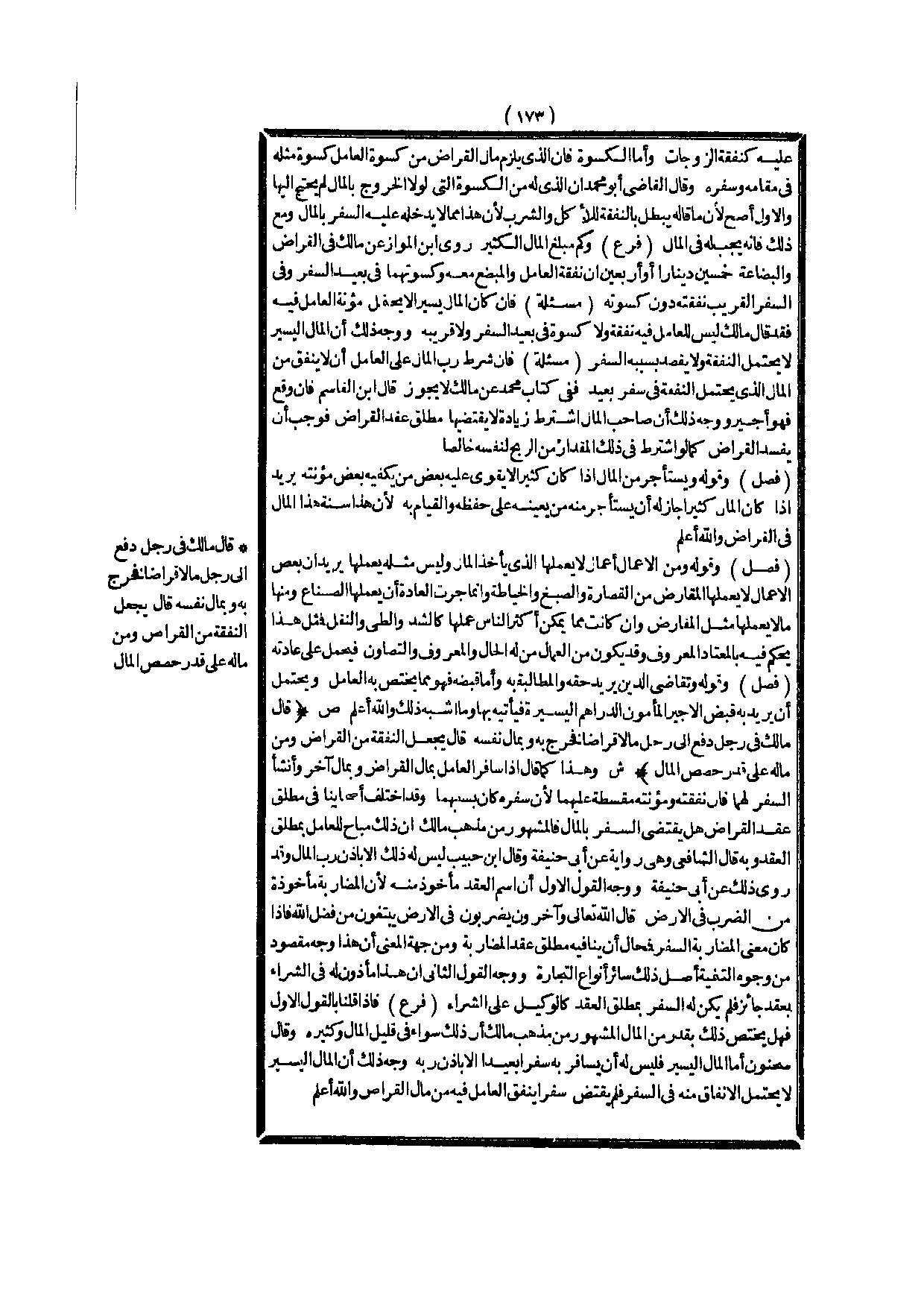 ـــــــــــــــــــــــــــــQعَلَيْهِ كَنَفَقَةِ الزَّوْجَاتِ، وَأَمَّا الْكِسْوَةُ فَإِنَّ الَّذِي يَلْزَمُ مَالَ الْقِرَاضِ مِنْ كِسْوَةِ الْعَامِلِ كِسْوَةُ مِثْلِهِ فِي مُقَامِهِ وَسَفَرِهِ.