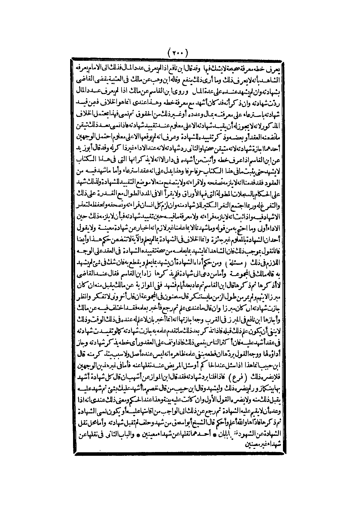 وَقَالَهُ ابْنُ وَهْبٍ عَنْ مَالِكٍ فِي الْعُتْبِيَّةِ يَقْضِي الْقَاضِي بِشَهَادَتِهِ، وَإِنْ لَمْ يَشْهَدْ عِنْدَهُ عَلَى عِدَّةِ الْمَالِ، وَرَوَى ابْنُ الْقَاسِمِ عَنْ مَالِكٍ إذَا لَمْ يَعْرِفْ عَدَدَ الْمَالِ رُدَّتْ شَهَادَتُهُ، وَإِنْ ذَكَرَ أَنَّهُ قَدْ كَانَ أُشْهِدَ مَعَ مَعْرِفَةِ خَطِّهِ وَهَذَا عِنْدِي إنَّمَا هُوَ الْخِلَافُ فِيمَنْ قَيَّدَ شَهَادَتَهُ بِاسْتِرْعَاءٍ عَلَى مَعْرِفَتِهِ بِمَالٍ وَعَدَدِهِ أَوْ غَيْرِ ذَلِكَ مِنْ الْحُقُوقِ ثُمَّ نَسِيَ فَهَذَا يَحْتَمِلُ الْخِلَافَ الْمَذْكُورَ؛ لِأَنَّهُ لَا يَجُوزُ لَهُ أَنْ يُقَيِّدَ شَهَادَتَهُ إلَّا عَلَى مَعْلُومٍ عِنْدَ تَقْيِيدِ شَهَادَتِهِ.