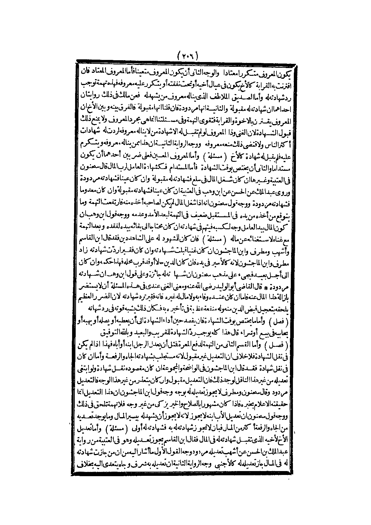 ـــــــــــــــــــــــــــــQيَكُونَ الْمَعْرُوفُ مُتَكَرِّرًا مُعْتَادًا وَالْوَجْهُ الثَّانِي أَنْ يَكُونَ الْمَعْرُوفُ مُتَعَيِّنًا، فَأَمَّا الْمَعْرُوفُ الْمُعْتَادُ فَإِنْ اقْتَرَنَتْ بِهِ الْقَرَابَةُ كَالْأَخِ يَكُونُ فِي عِيَالِ أَخِيهِ أَوْ تَحْتَ نَفَقَتِهِ أَوْ يَتَكَرَّرُ عَلَيْهِ مَعْرُوفُهُ فَهَذِهِ تُهْمَةٌ تُوجِبُ رَدَّ شَهَادَتِهِ لَهُ، وَأَمَّا الصَّدِيقُ الْمُلَاطِفُ الَّذِي يَنَالُهُ مَعْرُوفُ مَنْ يَشْهَدُ لَهُ فَعَنْ مَالِكٍ فِي ذَلِكَ رِوَايَتَانِ إحْدَاهُمَا أَنَّ شَهَادَتَهُ لَهُ مَقْبُولَةٌ وَالثَّانِيَةُ أَنَّهَا مَرْدُودَةٌ فَإِنْ قُلْنَا إنَّهَا مَقْبُولَةٌ فَالْفَرْقُ بَيْنَهُ وَبَيْنَ الْأَخِ أَنَّ الْمَعْرُوفَ يَقْتَرِنُ بِالْأُخُوَّةِ وَالْقَرَابَةِ فَتَقْوَى التُّهْمَةُ، وَفِي مَسْأَلَتِنَا إنَّمَا هِيَ مُجَرَّدُ الْمَعْرُوفِ وَلَا يَمْنَعُ ذَلِكَ قَبُولَ الشَّهَادَةِ؛ لِأَنَّ الْغَنِيَّ وَذَا الْمَعْرُوفِ لَوْ لَمْ تُقْبَلْ لَهُ إلَّا شَهَادَةُ مَنْ لَا يَنَالُهُ مَعْرُوفُهُ لَرُدَّتْ لَهُ شَهَادَاتُ أَكْثَرِ النَّاسِ وَلَاقْتَضَى ذَلِكَ مَنْعَهُ مَعْرُوفَهُ، وَوَجْهُ الرِّوَايَةِ الثَّانِيَةِ أَنَّ هَذَا مِمَّنْ يَنَالُهُ مَعْرُوفُهُ وَيَتَكَرَّمُ عَلَيْهِ فَلَمْ يُقْبَلْ لَهُ شَهَادَةٌ كَالْأَخِ.