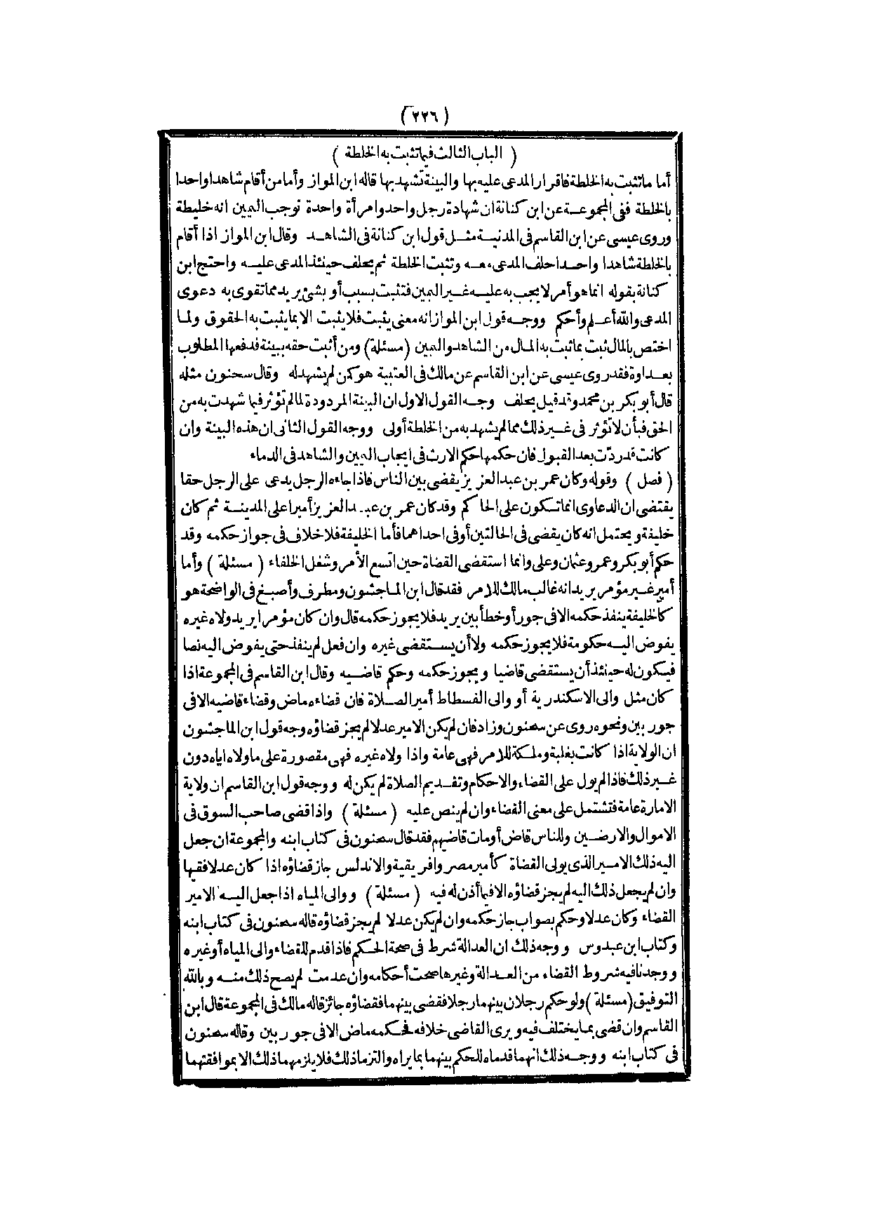 وَقَوْلُهُ وَكَانَ عُمَرُ بْنُ عَبْدِ الْعَزِيزِ يَقْضِي بَيْنَ النَّاسِ فَإِذَا جَاءَهُ الرَّجُلُ يَدَّعِي عَلَى الرَّجُلِ حَقًّا يَقْتَضِي أَنَّ الدَّعَاوَى إنَّمَا تَكُونُ عَلَى الْحَاكِمِ وَقَدْ كَانَ عُمَرُ بْنُ عَبْدِ الْعَزِيزِ أَمِيرًا عَلَى الْمَدِينَةِ ثُمَّ كَانَ خَلِيفَةً، وَيَحْتَمِلُ أَنَّهُ كَانَ يَقْضِي فِي الْحَالَتَيْنِ أَوْ فِي إحْدَاهُمَا فَأَمَّا الْخَلِيفَةُ فَلَا خِلَافَ فِي جَوَازِ حُكْمِهِ وَقَدْ حَكَمَ أَبُو بَكْرٍ وَعُمَرُ وَعُثْمَانُ وَعَلِيٌّ، وَإِنَّمَا اسْتَقْضَى الْقُضَاةُ حِينَ اتَّسَعَ الْأَمْرُ وَشُغِلَ الْخُلَفَاءُ.
