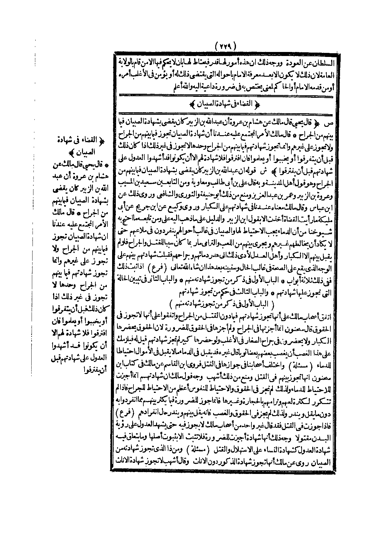 (ش) : قَوْلُهُ: إنَّ عَبْدَ اللَّهِ بْنَ الزُّبَيْرِ كَانَ يَقْضِي بِشَهَادَةِ الصِّبْيَانِ فِيمَا بَيْنَهُمْ مِنْ الْجِرَاحِ، وَهُوَ قَوْلُ أَهْلِ الْمَدِينَةِ، وَبِهِ قَالَ عَلِيُّ بْنُ أَبِي طَالِبٍ وَمُعَاوِيَةُ وَمِنْ التَّابِعِينَ سَعِيدُ بْنُ الْمُسَيِّبِ وَعُرْوَةُ بْنُ الزُّبَيْرِ وَعُمَرُ بْنُ عَبْدِ الْعَزِيزِ وَمَنَعَ مِنْ ذَلِكَ أَبُو حَنِيفَةَ وَالثَّوْرِيُّ وَالشَّافِعِيُّ.