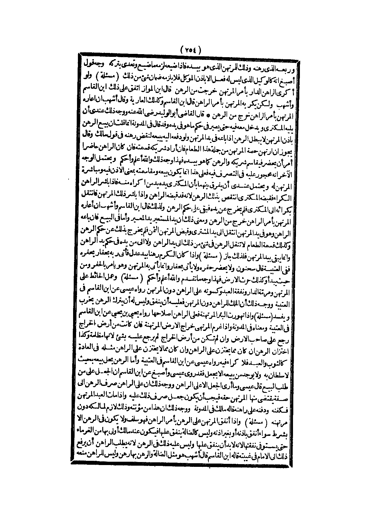 وَعَمَلُ الْحَائِطِ عَلَى الْمُرْتَهِنِ وَمَرَمَّةُ الدَّارِ وَنَفَقَةُ الْعَبْدِ وَكِسْوَتُهُ عَلَى الرَّاهِنِ دُونَ الْمُرْتَهِنِ رَوَاهُ عِيسَى عَنْ ابْنِ الْقَاسِمِ فِي الْعُتْبِيَّةِ وَوَجْهُ ذَلِكَ أَنَّ الْمِلْكَ لِلرَّاهِنِ دُونَ الْمُرْتَهِنِ فَعَلَيْهِ أَنْ يُنْفِقَ، وَلَيْسَ لَهُ أَنْ يَتْرُكَ الرَّهْنَ يَخْرُبُ، وَيَفْسُدُ.