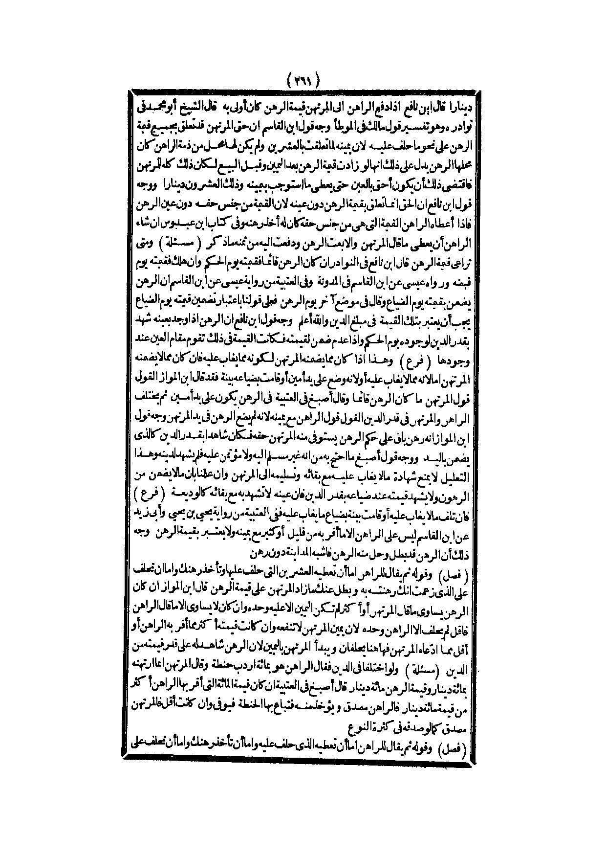 (فَرْعٌ) فَإِنْ تَلِفَ مَا لَا يُغَابُ عَلَيْهِ أَوْ قَامَتْ بَيِّنَةٌ بِضَيَاعِ مَا يُغَابُ عَلَيْهِ فَفِي الْعُتْبِيَّةِ مِنْ رِوَايَةِ يَحْيَى بْنِ يَحْيَى وَأَبِي زَيْدٍ عَنْ ابْنِ الْقَاسِمِ لَيْسَ عَلَى الرَّاهِنِ إلَّا مَا أَقَرَّ بِهِ مِنْ قَلِيلٍ أَوْ كَثِيرٍ مَعَ يَمِينِهِ، وَلَا يُعْتَبَرُ بِقِيمَةِ الرَّهْنِ وَجْهُ ذَلِكَ أَنَّ الرَّهْنَ قَدْ بَطَلَ وَحَلَّ مِنْهُ الرَّهْنُ فَأَشْبَهَ الْمُدَايَنَةَ دُونَ رَهْنٍ.