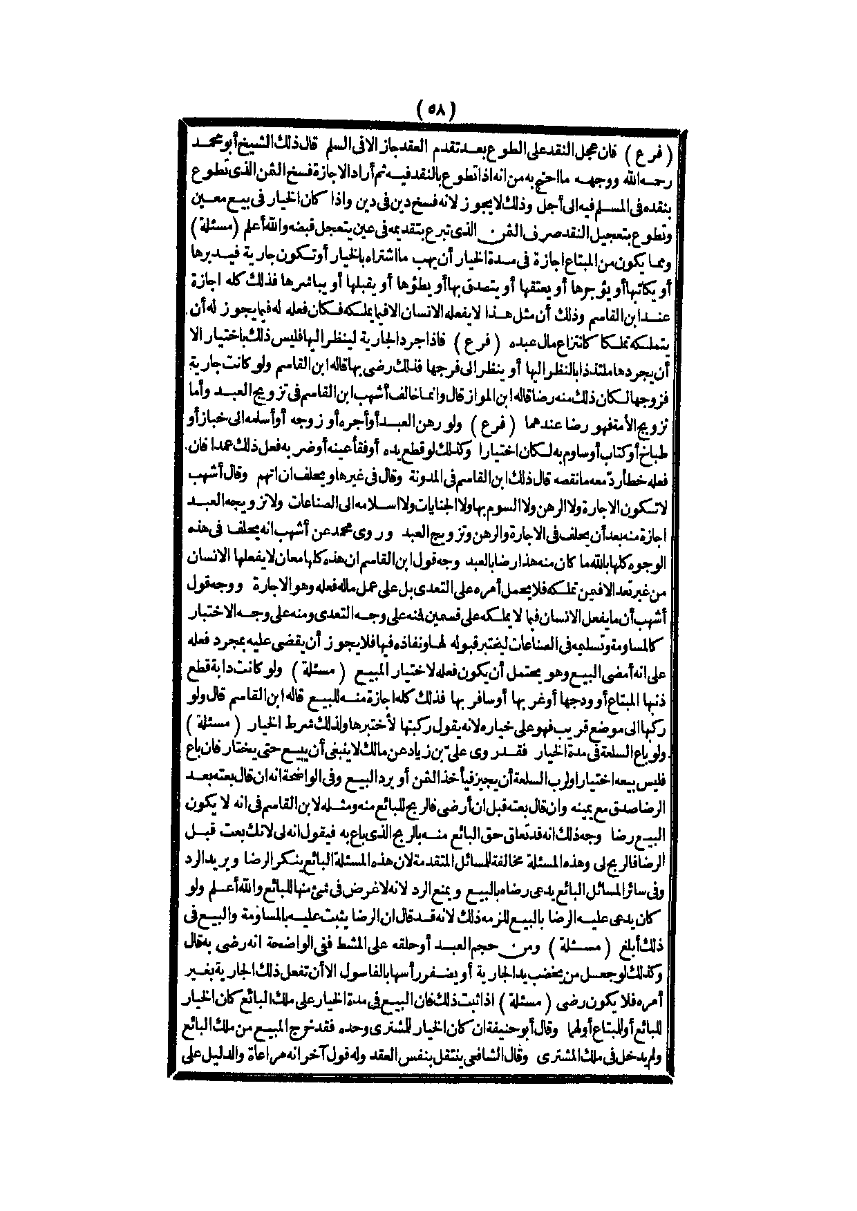 (فَرْعٌ) وَلَوْ رَهَنَ الْعَبْدَ أَوْ أَجَرَهُ أَوْ زَوَّجَهُ أَوْ أَسْلَمَهُ إلَى خَبَّازٍ أَوْ طَبَّاخٍ أَوْ كِتَابٍ أَوْ سَاوَمَ بِهِ لَكَانَ اخْتِيَارًا، وَكَذَلِكَ لَوْ قُطْع يَدَهُ أَوْ فَقَأَ عَيْنَهُ أَوْ ضَرَّ بِهِ فَعَلَ ذَلِكَ عَمْدًا فَإِنْ فَعَلَهُ خَطَأً رَدَّ مَعَهُ مَا نَقَصَهُ قَالَ ذَلِكَ ابْنُ الْقَاسِمِ فِي الْمُدَوَّنَةِ، وَقَالَ فِي غَيْرِهَا، وَيَحْلِفُ إنْ اُتُّهِمَ، وَقَالَ أَشْهَبُ لَا تَكُونُ الْإِجَارَةُ وَلَا الرَّهْنُ وَلَا السَّوْمُ بِهَا وَلَا الْجِنَايَاتُ وَلَا إسْلَامُهُ إلَى الصِّنَاعَاتِ، وَلَا تَزْوِيجُهُ الْعَبْدَ إجَازَةً مِنْهُ بَعْدَ أَنْ يَحْلِفَ فِي الْإِجَارَةِ وَالرَّهْنِ وَتَزْوِيجِ الْعَبْدِ، وَرَوَى مُحَمَّدٌ عَنْ أَشْهَبَ أَنَّهُ يَحْلِفُ فِي هَذِهِ الْوُجُوهِ كُلِّهَا بِاَللَّهِ مَا كَانَ مِنْهُ هَذَا رِضًا بِالْعَبْدِ وَجْهُ قَوْلِ ابْنِ الْقَاسِمِ إنَّ هَذِهِ كُلَّهَا مَعَانٍ لَا يَفْعَلُهَا الْإِنْسَانُ مِنْ غَيْرِ تَعَدٍّ إلَّا فِيمَنْ تَمَلَّكَهُ فَلَا يُحْمَلُ أَمْرُهُ عَلَى التَّعَدِّي بَلْ عَلَى عَمَلِ مَا لَهُ فِعْلُهُ، وَهُوَ الْإِجَارَةُ، وَوَجْهُ قَوْلِ أَشْهَبَ أَنَّ مَا يَفْعَلُهُ الْإِنْسَانُ فِيمَا لَا يَمْلِكُهُ عَلَى قِسْمَيْنِ فَمِنْهُ عَلَى وَجْهِ التَّعَدِّي، وَمِنْهُ عَلَى وَجْهِ الِاخْتِبَارِ كَالْمُسَاوَمَةِ وَتَسْلِيمِهِ فِي الصِّنَاعَاتِ لِيَخْتَبِرَ قَبُولَهُ لَهَا وَنَفَاذَهُ فِيهَا فَلَا يَجُوزُ أَنْ يَقْضِيَ عَلَيْهِ بِمُجَرَّدِ فِعْلِهِ عَلَى أَنَّهُ أَمْضَى الْبَيْعَ، وَهُوَ يَحْتَمِلُ أَنْ يَكُونَ فِعْلُهُ لِاخْتِيَارِ الْمَبِيعِ.