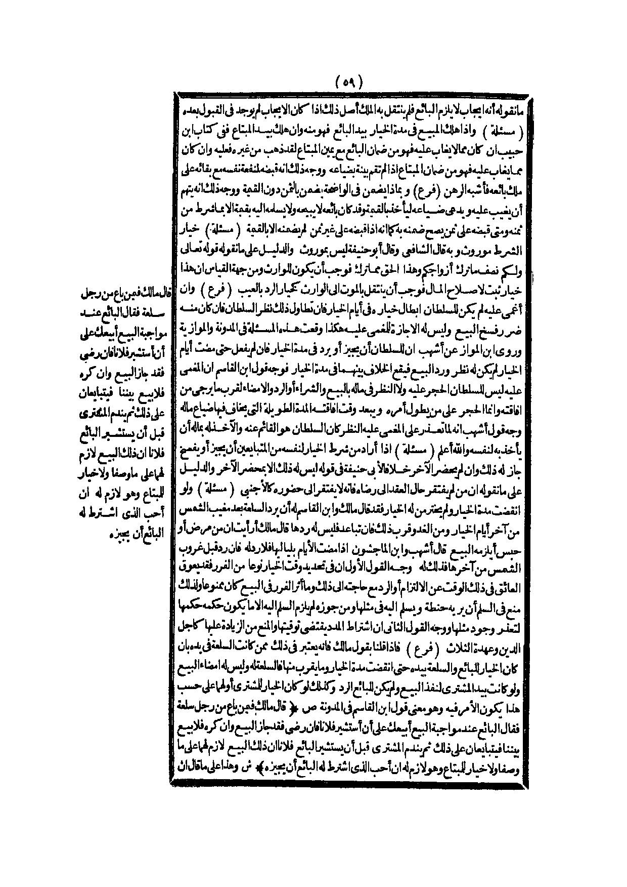 (فَرْعٌ) وَإِنْ أُغْمِيَ عَلَيْهِ لَمْ يَكُنْ لِلسُّلْطَانِ إبْطَالُ خِيَارِهِ فِي أَيَّامِ الْخِيَارِ فَإِنْ تَطَاوَلَ ذَلِكَ نَظَرَ السُّلْطَانُ فَإِنْ كَانَ مِنْهُ ضَرَرٌ فَسَخَ الْبَيْعَ، وَلَيْسَ لَهُ الْإِجَازَةُ لِلْمُغْمَى عَلَيْهِ هَكَذَا وَقَعَتْ هَذِهِ الْمَسْأَلَةُ فِي الْمُدَوَّنَةِ، وَالْمَوَّازِيَّةِ، وَرَوَى ابْنُ الْمَوَّازِ عَنْ أَشْهَبَ أَنَّ لِلسُّلْطَانِ أَنْ يُجِيزَ أَوْ يَرُدَّ فِي مُدَّةِ الْخِيَارِ فَإِنْ لَمْ يَفْعَلْ حَتَّى مَضَتْ أَيَّامُ الْخِيَارِ لَمْ يَكُنْ لَهُ نَظَرٌ، وَرَدَّ الْبَيْعَ فَيَقَعُ الْخِلَافُ بَيْنَهُمَا فِي مُدَّةِ الْخِيَارِ.