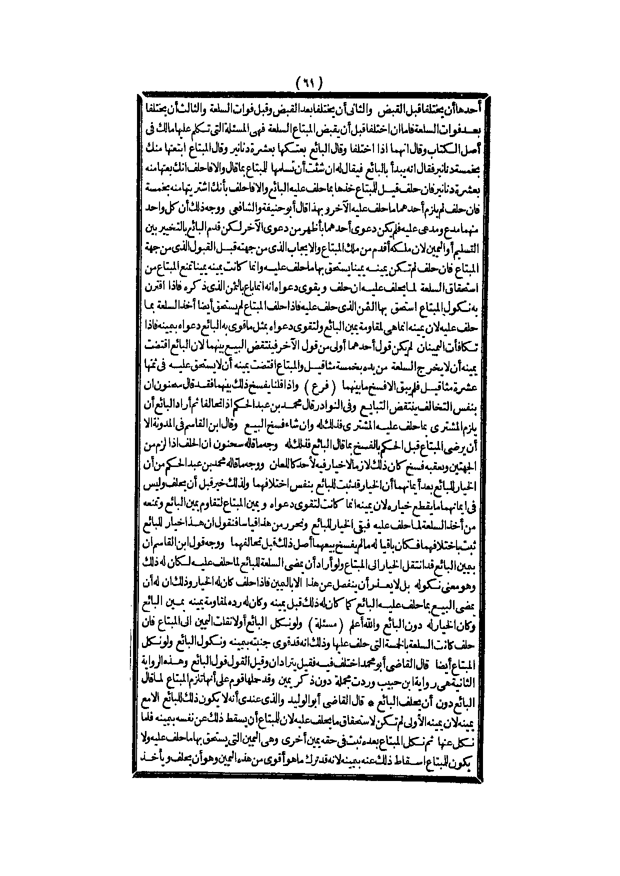 ـــــــــــــــــــــــــــــQأَحَدُهُمَا أَنْ يَخْتَلِفَا قَبْلَ الْقَبْضِ، وَالثَّانِي أَنْ يَخْتَلِفَا بَعْدَ الْقَبْضِ، وَقَبْلَ فَوَاتِ السِّلْعَةِ، وَالثَّالِثُ أَنْ يَخْتَلِفَا بَعْدَ فَوَاتِ السِّلْعَةِ فَأَمَّا إنْ اخْتَلَفَا قَبْلَ أَنْ يَقْبِضَ الْمُبْتَاعُ السِّلْعَةَ فَهِيَ الْمَسْأَلَةُ الَّتِي تَكَلَّمَ عَلَيْهَا مَالِكٌ فِي أَصْلِ الْكِتَابِ، وَقَالَ إنَّهُمَا إذَا اخْتَلَفَا، وَقَالَ الْبَائِعُ بِعْتُكهَا بِعَشَرَةِ دَنَانِيرَ، وَقَالَ الْمُبْتَاعُ ابْتَعْتهَا مِنْك بِخَمْسَةِ دَنَانِيرَ فَقَالَ إنَّهُ يَبْدَأُ بِالْبَائِعِ فَيُقَالُ لَهُ إنْ شِئْت أَنْ تُسَلِّمَهَا لِلْمُبْتَاعِ بِمَا قَالَ وَإِلَّا فَاحْلِفْ أَنَّك بِعْتهَا مِنْهُ بِعَشَرَةِ دَنَانِيرَ فَإِنْ حَلَفَ قِيلَ لِلْمُبْتَاعِ خُذْهَا بِمَا حَلَفَ عَلَيْهِ الْبَائِعُ، وَإِلَّا فَاحْلِفْ بِأَنَّك اشْتَرَيْتهَا مِنْهُ بِخَمْسَةٍ فَإِنْ حَلَفَ لَمْ يَلْزَمْ أَحَدُهُمَا مَا حَلَفَ عَلَيْهِ الْآخَرُ، وَبِهَذَا قَالَ أَبُو حَنِيفَةَ وَالشَّافِعِيُّ، وَوَجْهُ ذَلِكَ أَنَّ كُلَّ وَاحِدٍ مِنْهُمَا مُدَّعٍ، وَمُدَّعًى عَلَيْهِ فَلَمْ يَكُنْ دَعْوَى أَحَدِهِمَا بِأَظْهَرَ مِنْ دَعْوَى الْآخَرِ لَكِنْ قَدَمَ الْبَائِعُ بِالتَّخْيِيرِ بَيْنَ التَّسْلِيمِ أَوْ الْيَمِينِ؛ لِأَنَّ مِلْكَهُ أَقْدَمُ مِنْ مِلْكِ الْمُبْتَاعِ، وَالْإِيجَابُ الَّذِي مِنْ جِهَتِهِ قَبْلَ الْقَبُولِ الَّذِي مِنْ جِهَةِ الْمُبْتَاعِ فَإِنْ حَلَفَ لَمْ تَكُنْ يَمِينُهُ يَمِينًا يَسْتَحِقُّ بِهَا مَا حَلَفَ عَلَيْهِ، وَإِنَّمَا كَانَتْ يَمِينُهُ يَمِينًا تَمْنَعُ الْمُبْتَاعَ مِنْ اسْتِحْقَاقِ السِّلْعَةِ لِمَا يَحْلِفُ عَلَيْهِ إنْ حَلَفَ، وَيُقَوِّي دَعْوَاهُ أَنَّهُ إنَّمَا بَاعَ بِالثَّمَنِ الَّذِي ذَكَرَهُ فَإِذَا اقْتَرَنَ بِهِ نُكُولُ الْمُبْتَاعِ اسْتَحَقَّ بِهَا الثَّمَنَ الَّذِي حَلَفَ عَلَيْهِ فَإِذَا حَلَفَ الْمُبْتَاعُ لَمْ يَسْتَحِقَّ أَيْضًا أَخْذَ السِّلْعَةِ بِمَا حَلَفَ عَلَيْهِ؛ لِأَنَّ يَمِينَهُ إنَّمَا هِيَ لِمُقَاوَمَةِ يَمِينِ الْبَائِعِ، وَلِتَقْوَى دَعْوَاهُ بِمِثْلِ مَا قَوَّى بِهِ الْبَائِعُ دَعْوَاهُ بِيَمِينِهِ فَإِذَا تَكَافَأَتْ الْيَمِينَانِ لَمْ يَكُنْ قَوْلُ أَحَدِهِمَا أَوْلَى مِنْ قَوْلِ الْآخَرِ فَيُنْتَقَضُ الْبَيْعُ بَيْنَهُمَا؛ لِأَنَّ الْبَائِعَ اقْتَضَتْ يَمِينُهُ أَنْ لَا يُخْرِجَ السِّلْعَةَ مِنْ يَدِهِ بِخَمْسَةِ مَثَاقِيلَ، وَالْمُبْتَاعُ اقْتَضَتْ يَمِينُهُ أَنْ لَا يَسْتَحِقَّ عَلَيْهِ فِي ثَمَنِهَا عَشَرَةَ مَثَاقِيلَ فَلَمْ يَبْقَ إلَّا فَسْخُ مَا بَيْنَهُمَا.