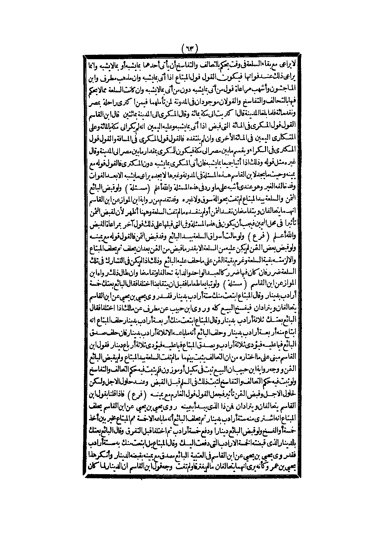 ـــــــــــــــــــــــــــــQلَا يُرَاعِي مَعَ بَقَاءِ السِّلْعَةِ فِي وَقْتٍ يُحْكَمُ بِالتَّحَالُفِ وَالتَّفَاسُخِ أَنْ يَأْتِيَ أَحَدُهُمَا بِمَا يُشْبِهُ أَوْ بِمَا لَا يُشْبِهُ، وَإِنَّمَا يُرَاعِي ذَلِكَ عِنْدَ فَوَاتِهَا فَيَكُونُ الْقَوْلُ قَوْلَ الْمُبْتَاعِ إذَا أَتَى بِمَا يُشْبِهُ، وَإِنَّ مَذْهَبَ مُطَرِّفٍ وَابْنِ الْمَاجِشُونِ وَأَشْهَبَ مُرَاعَاةُ قَوْلِ مَنْ أَتَى بِمَا يُشْبِهُ دُونَ مَنْ أَتَى بِمَا لَا يُشْبِهُ، وَإِنْ كَانَتْ السِّلْعَةُ مِمَّا لَا يُحْكَمُ فِيهَا بِالتَّحَالُفِ وَالتَّفَاسُخِ، وَالْقَوْلَانِ مَوْجُودَانِ فِي الْمُدَوَّنَةِ لِمَنْ تَأَمَّلَهُمَا فِيمَنْ اكْتَرَى رَاحِلَةً بِمِصْرَ، وَنَقَدَ مِائَةً فَلَمَّا بَلَغَا الْمَدِينَةَ قَالَ اكْتَرَيْت إلَى مَكَّةَ بِمِائَةٍ، وَقَالَ الْمُكْرَى إلَى الْمَدِينَةِ بِمِائَتَيْنِ قَالَ ابْنُ الْقَاسِمِ الْقَوْلُ قَوْلُ الْمُكْرَى فِي الْمِائَةِ الَّتِي قَبَضَ إذَا أَتَى بِمَا يُشْبِهُ، وَعَلَيْهِ الْيَمِينُ إنَّهُ لَمْ يُكْرِ إلَى مَكَّةَ بِالْمِائَةِ، وَعَلَى الْمُتَكَارَى الْيَمِينُ فِي الْمِائَةِ الْأُخْرَى، وَإِنْ لَمْ يَنْتَقِدْهُ فَالْقَوْلُ قَوْلُ الْمُكْرِي فِي الْمَسَافَةِ، وَالْقَوْلُ قَوْلُ الْمُكْتَرَى فِي الْكِرَاءِ، وَيُقْسَمُ مَا بَيْنَ مِصْرَ إلَى مَكَّةَ فَيَكُونُ لِلْمُكْرَى بِمِقْدَارِ مَا بَيْنَ مِصْرَ إلَى الْمَدِينَةِ، وَقَالَ غَيْرُهُ مِثْلَ قَوْلِهِ، وَذَلِكَ إذَا أَتَيَا جَمِيعًا بِمَا يُشْبِهُ فَإِنْ أَتَى الْمُكْرِي بِمَا يُشْبِهُ دُونَ الْمُكْتَرَى فَالْقَوْلُ قَوْلُهُ مَعَ يَمِينِهِ، وَحَيْثُ مَا يَجِدُ لِابْنِ الْقَاسِمِ هَذِهِ الْمَسْأَلَةَ فِي الْمُدَوَّنَةِ، وَغَيْرِهَا لَا يَجِدُهُ يُرَاعِي مَا يُشْبِهُ إلَّا بَعْدَ الْفَوَاتِ، وَقَدْ خَالَفَهُ الْغَيْرُ، وَهُوَ عِنْدِي أَشْبَهُ عَلَى مَا وَرَدَ فِي هَذِهِ الْمَسْأَلَةِ، وَاَللَّهُ أَعْلَمُ.