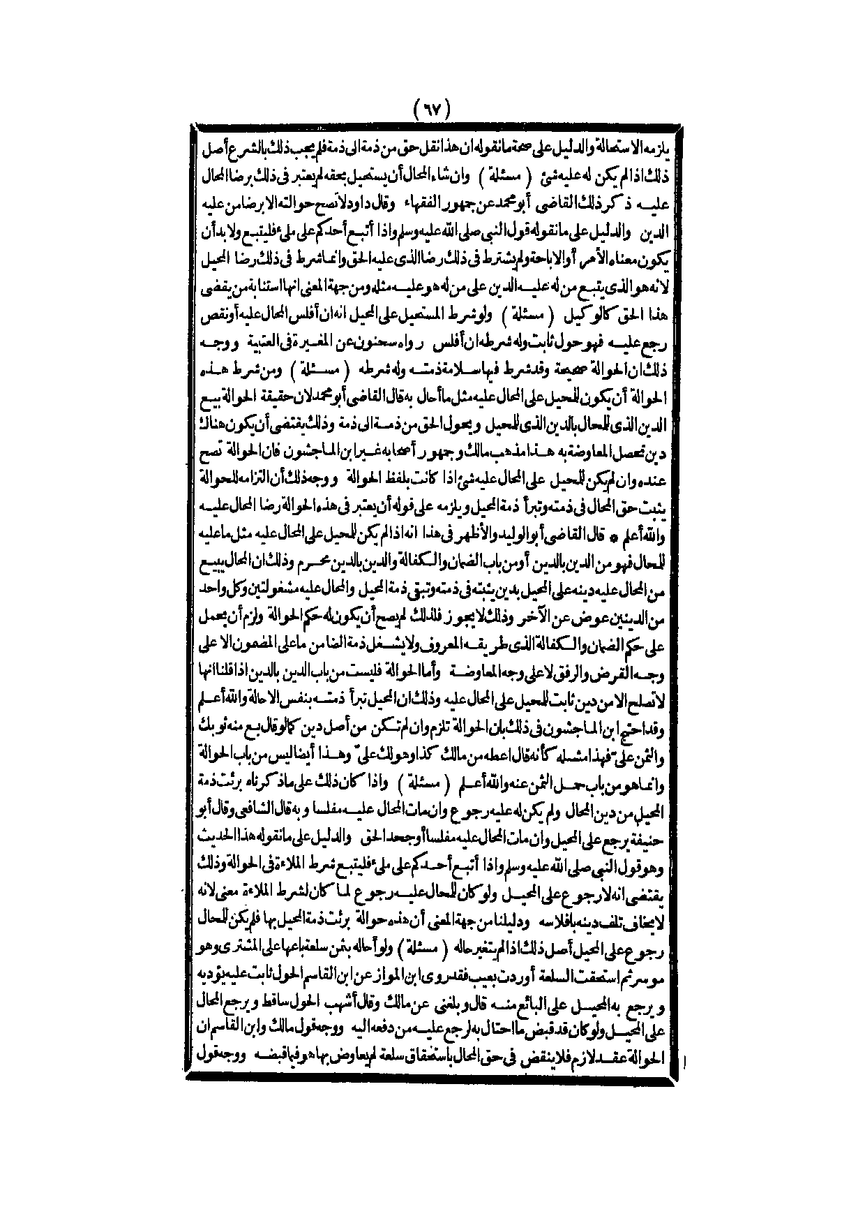 وَقَدْ احْتَجَّ ابْنُ الْمَاجِشُونِ فِي ذَلِكَ بِأَنَّ الْحَوَالَةَ تَلْزَمُ، وَإِنْ لَمْ تَكُنْ مِنْ أَصْلِ دَيْنٍ كَمَا لَوْ قَالَ بِعْ مِنْهُ ثَوْبَك، وَالثَّمَنُ عَلَيَّ فَهَذَا مِثْلُهُ فَكَأَنَّهُ قَالَ أَعْطِهِ مِنْ مَالِك كَذَا، وَهُوَ لَك عَلَيَّ، وَهَذَا أَيْضًا لَيْسَ مِنْ بَابِ الْحَوَالَةِ، وَإِنَّمَا هُوَ مِنْ بَابِ حَمْلِ الثَّمَنِ عَنْهُ، وَاَللَّهُ أَعْلَمُ.