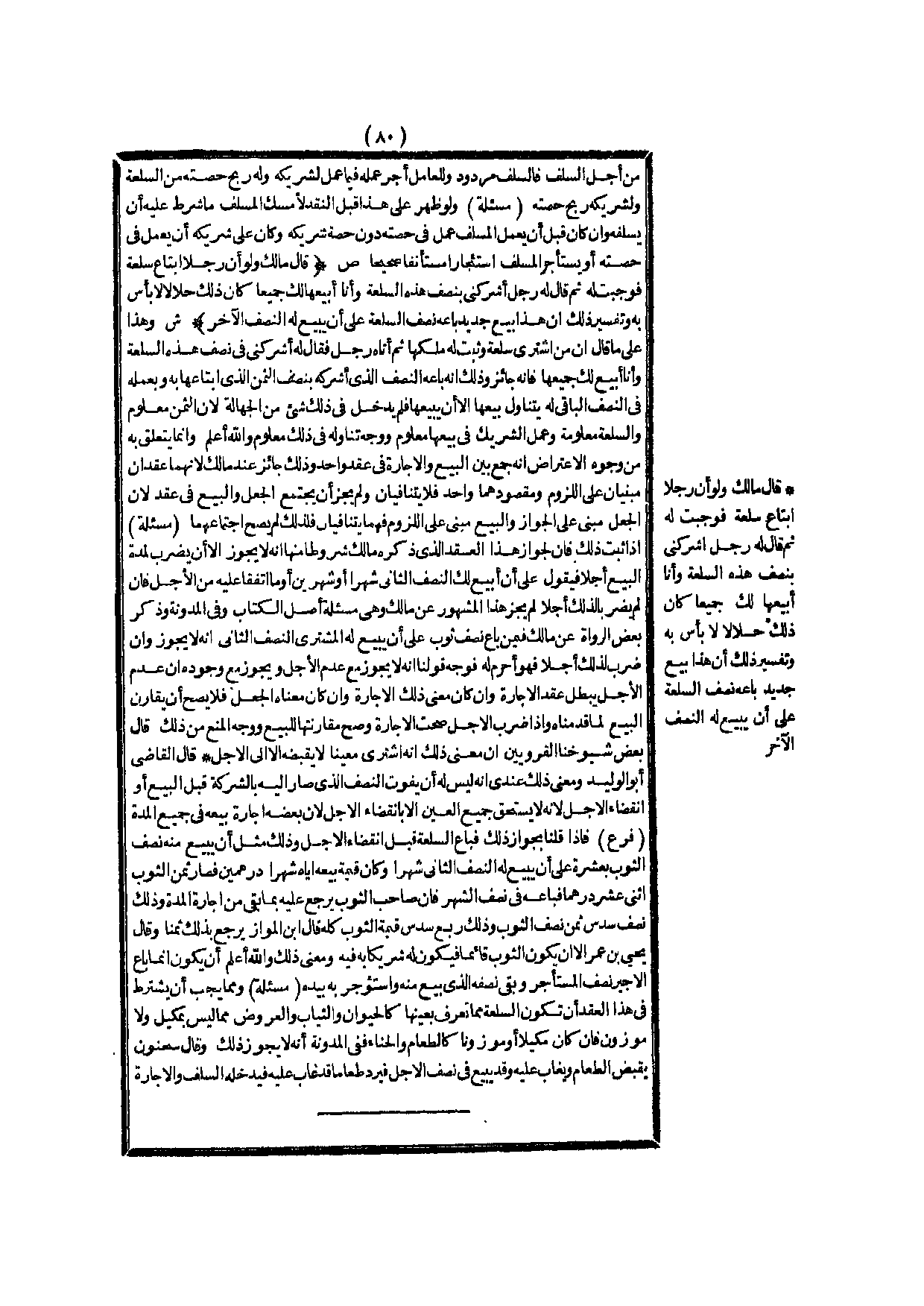 ـــــــــــــــــــــــــــــQمِنْ أَجْلِ السَّلَفِ فَالسَّلَفُ مَرْدُودٌ، وَلِلْعَامِلِ أَجْرُ عَمَلِهِ فِيمَا عَمِلَ لِشَرِيكِهِ، وَلَهُ رِبْحُ حِصَّتِهِ مِنْ السِّلْعَةِ وَلِشَرِيكِهِ رِبْحُ حِصَّتِهِ.