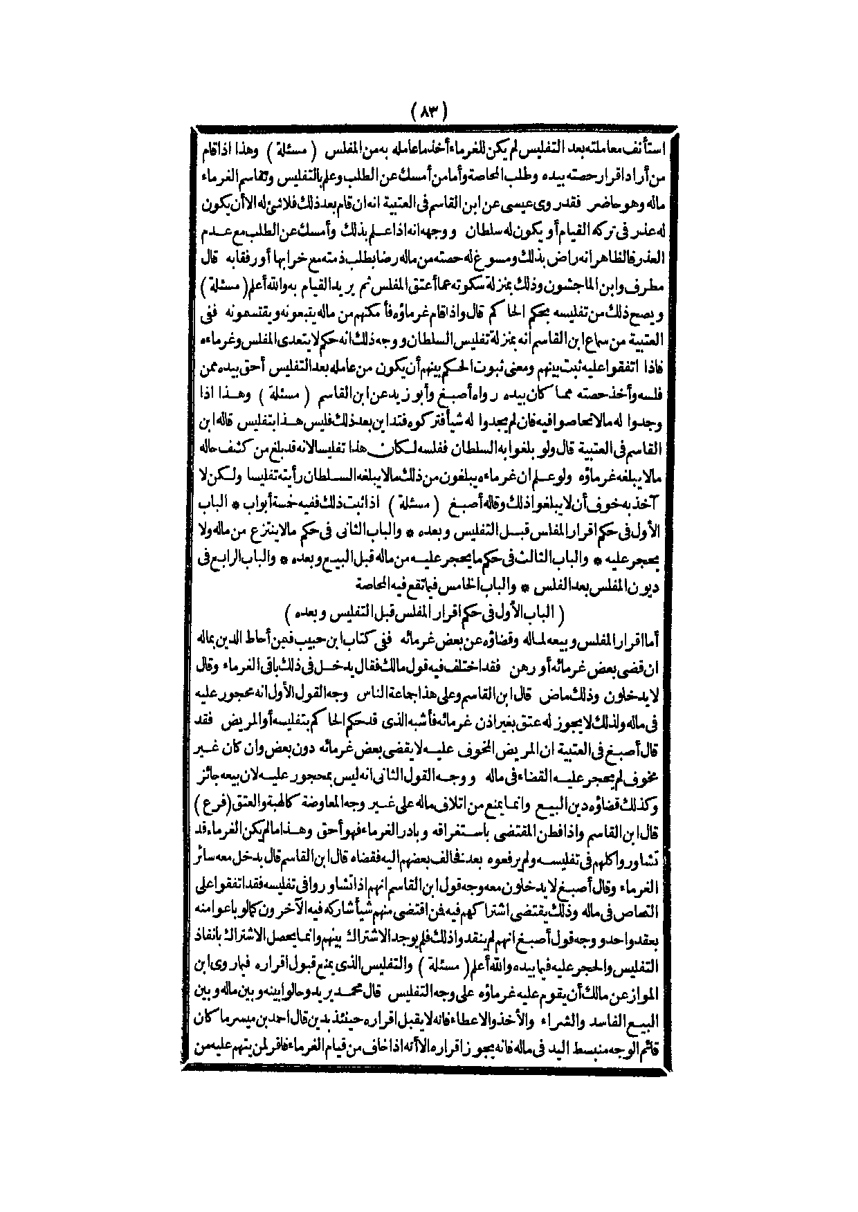 [الْبَابُ الْأَوَّلُ فِي حُكْمِ إقْرَارِ الْمُفْلِسِ قَبْلَ التَّفْلِيسِ وَبَعْدَهُ] 1
