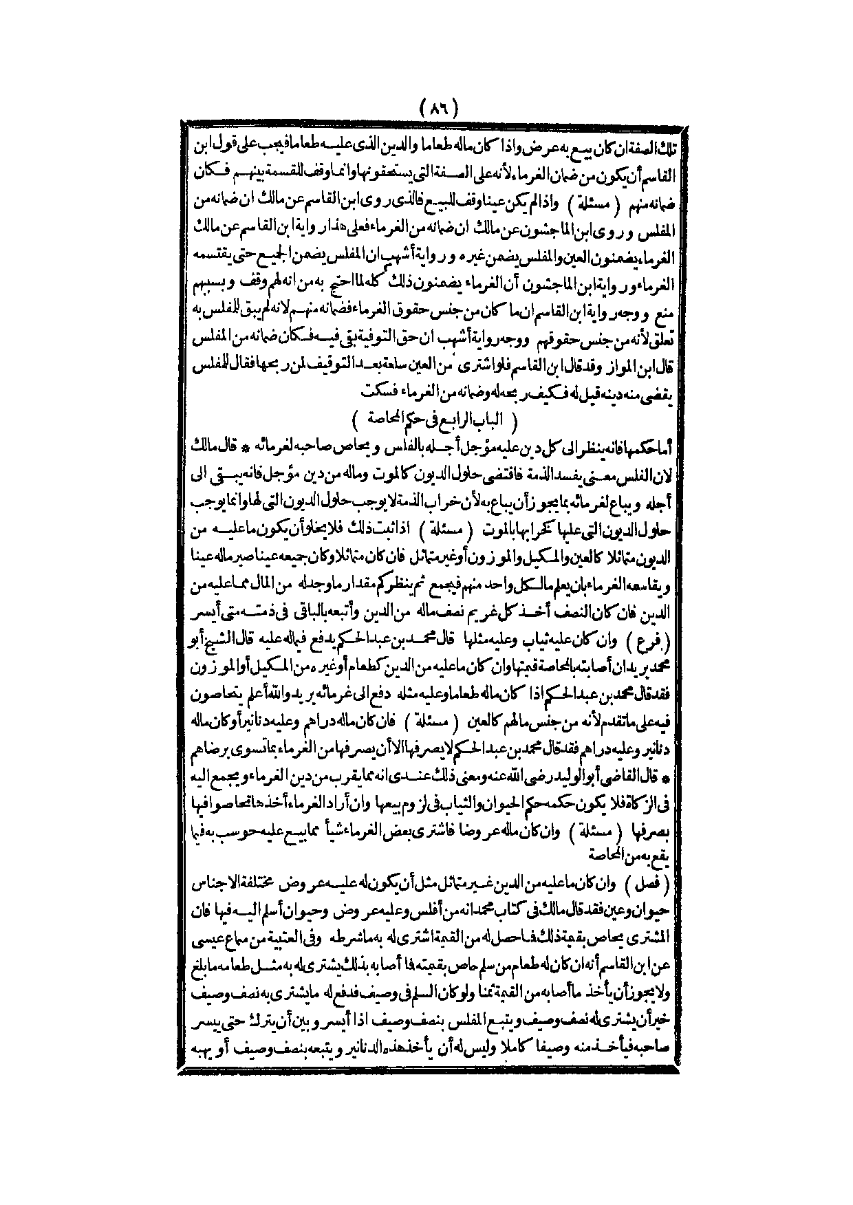 [الْبَابُ الرَّابِعُ فِي حُكْمِ الْمُحَاصَّةِ] 1