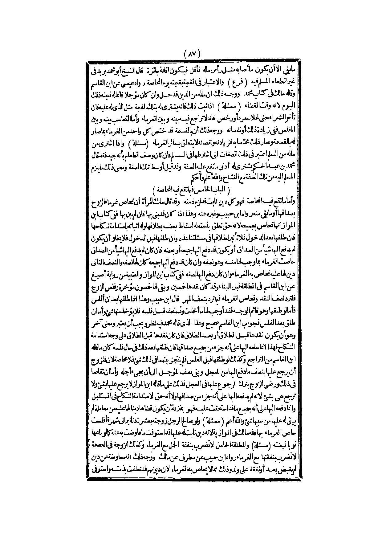 [الْبَابُ الْخَامِسُ فِيمَا تَقَعُ فِيهِ الْمُحَاصَّةُ]