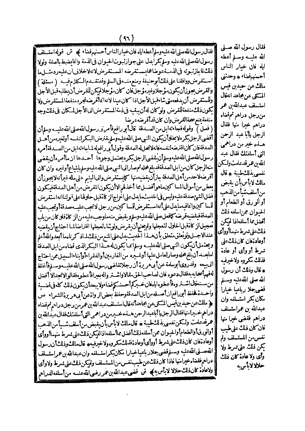 (ش) : قَضَى عَبْدُ اللَّهِ بْنُ عُمَرَ - رَضِيَ اللَّهُ عَنْهُ - مَنْ أَسْلَفَهُ الدَّرَاهِمَ