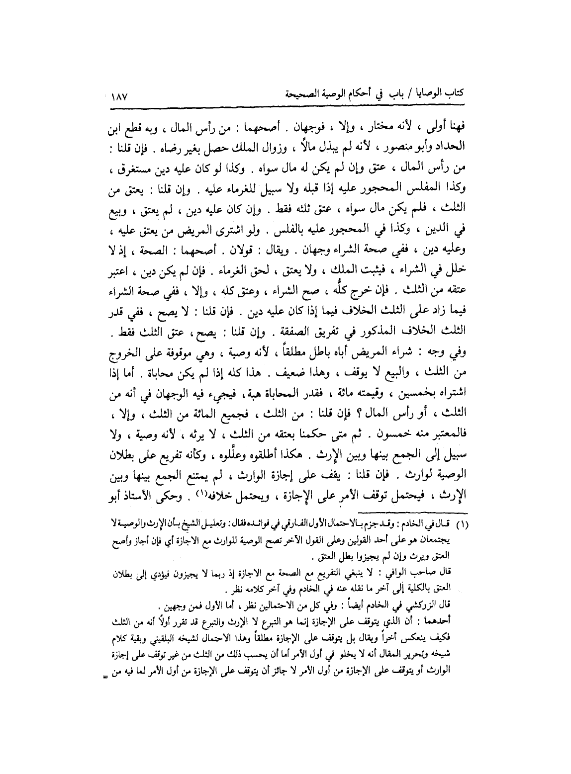 فهنا أولى، لانه مختار، وإلا، فوجهان. أصحهما: من رأس المال، وبه قطع ابن الحداد وأبو منصور، لانه لم يبذل مالا، وزوال الملك حصل بغير رضاه. فإن قلنا: من رأ س المال، عتق وإن لم يكن له مال سواه. وكذا لو كان عليه دين مستغرق، وكذا المفلس المحجور عليه إذا قبله ولا سبيل للغرماء عليه. وإن قلنا: يعتق من الثلث، فلم يكن مال سواه، عتق ثلثه فقط. وإن كان عليه دين، لم يعتق، وبيع في الدين، وكذا في المحجوز عليه بالفلس. ولو اشترى المريض من يعتق عليه، وعليه دين، ففي صحة الشراء وجهان. ويقال: قولان. أصحهما: الصحة، إذ لا خلل في الشراء، فيثبت الملك، ولا يعتق، لحق الغرماء. فإن لم يكن دين، اعتبر عتقه من الثلث. فإن خرج كله، صح الشراء، وعتق كله، وإلا، ففي صحة الشراء فيما زاد على الثلث الخلاف فيما إذا كان عليه دين. فإن قلنا: لا يصح، ففي قدر الثلث الخلاف المذكور في تفريق الصفقة. وإن قلنا: يصح، عتق الثلث فقط. وفي وجه: شراء المريض أباه باطل مطلقا، لانه وصية، وهي موقوفة على الخروج من الثلث، والبيع لا يوقف، وهذا ضعيف. هذا كله إذا لم يكن محاباة. أما إذا اشتراه بخمسين، وقيمته مائة، فقدر المحاباة هبة، فيجئ فيه الوجهان في أنه من الثلث، أو رأس المال ؟ فإن قلنا: من الثلث، فجميع المائة من الثلث، وإلا، فالمعتبر منه خمسون. ثم متى حكمنا بعتقه من الثلث، لا يرثه، لانه وصية، ولا سبيل إلى الجمع بينها وبين الارث. هكذا أطلقوه وعللوه، وكأنه تفريع على بطلان الوصية لوارث. فإن قلنا: يقف على إجازة الوارث، لم يمتنع الجمع بينها وبين الارث، فيحتمل توقف الامر على الاجازة، ويحتمل خلافه. وحكى الاستاذ أبو