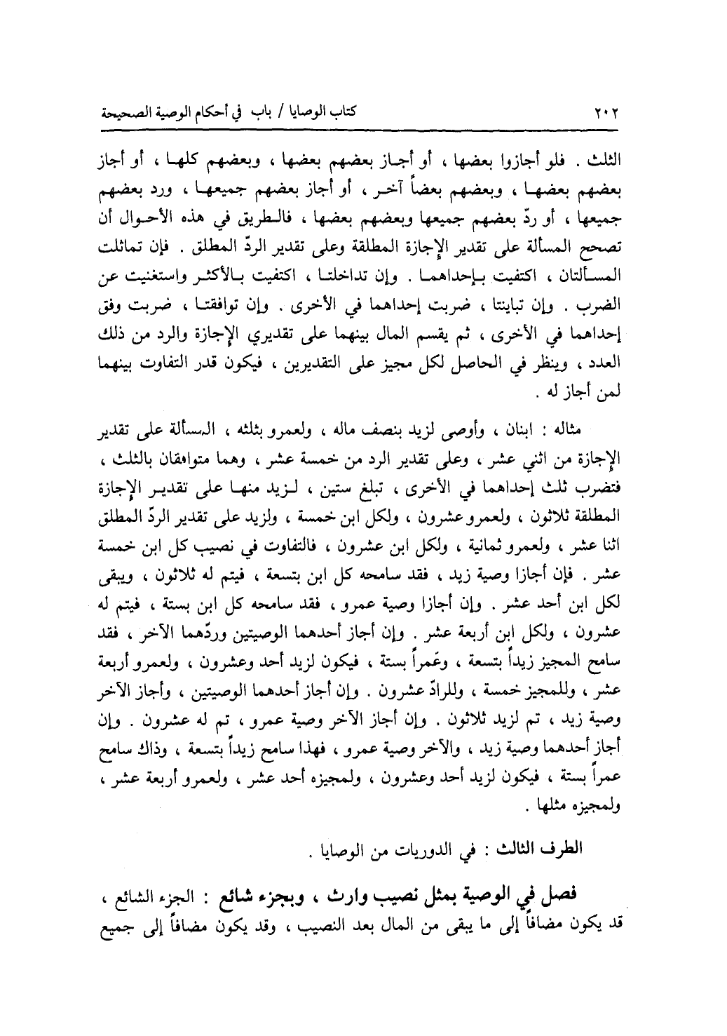 الطرف الثالث : في الدوريات من الوصايا. فصل في الوصية بمثل نصيب وارث، وبجزء شائع الجزء الشائع، قد يكون مضافا إلى ما يبقى من المال بعد النصيب، وقد يكون مضافا إلى جميع
