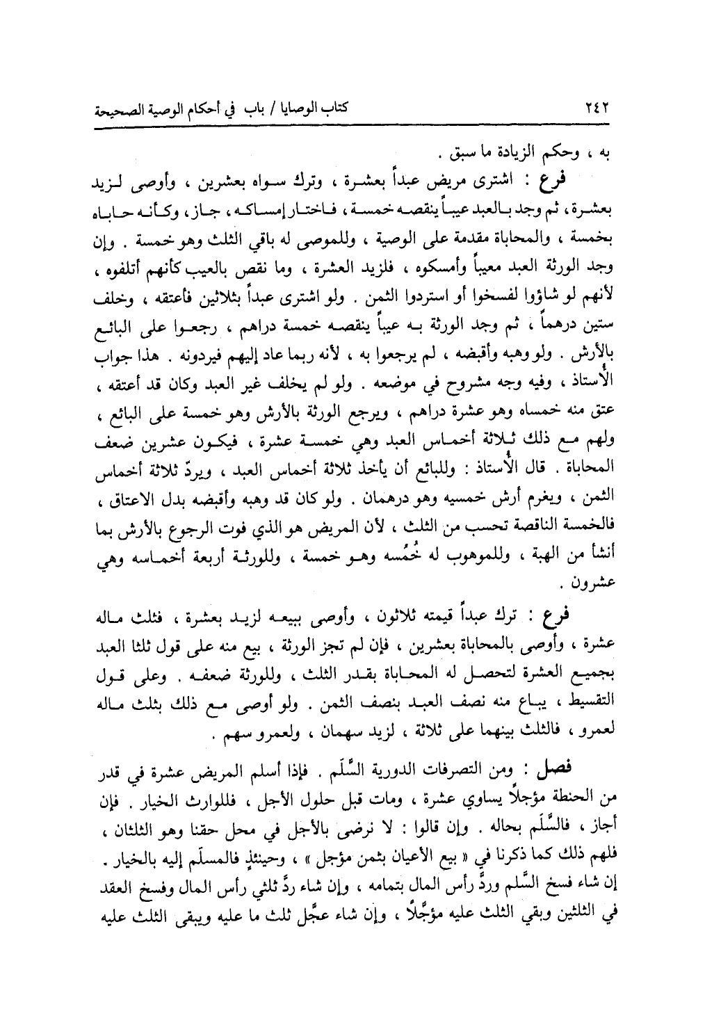 فصل ومن التصرفات الدورية السلم. فإذا أسلم المريض عشرة في قدر من الحنطة مؤجلا يساوي عشرة، ومات قبل حلول الاجل، فللوارث الخيار. فإن أجاز، فالسلم بحاله. وإن قالوا: لا نرضى بالاجل في محل حقنا وهو الثلثان، فلهم ذلك كما ذكرنا في بيع الاعيان بثمن مؤجل، وحينئذ فالمسلم إليه بالخيار، إن شاء فسخ السلم ورد رأس المال بتمامه، وإن شاء رد ثلثي رأس المال وفسخ العقد في الثلثين وبقي الثلث عليه مؤجلا، وإن شاء عجل ثلثي ما عليه ويبقى الثلث عليه