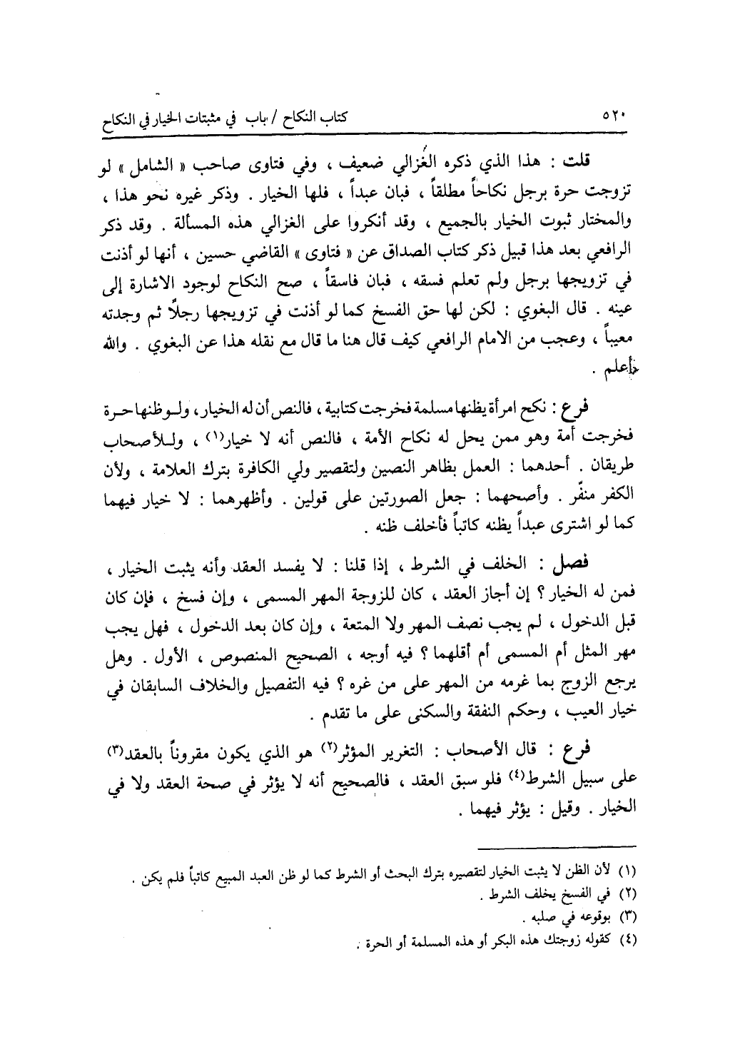 قلت: هذا الذي ذكره الغزالي ضعيف، وفي فتاوى صاحب الشامل لو تزوجت حرة برجل نكاحا مطلقا، فبان عبدا، فلها الخيار. وذكر غيره نحو هذا، والمختار ثبوت الخيار بالجميع، وقد أنكروا على الغزالي هذه المسألة. وقد ذكر الرافعي بعد هذا قبيل ذكر كتاب الصداق عن فتاوى القاضي حسين، أنها لو أذنت في تزويجها برجل ولم تعلم فسقه، فبان فاسقا، صح النكاح لوجود الاشارة إلى عينه. قال البغوي: لكن لها حق الفسخ كما لو أذنت في تزويجها رجلا ثم وجدته معيبا، وعجب من الامام الرافعي كيف قال هنا ما قال مع نقله هذا عن البغوي. والله أعلم. فرع نكح إمرأة يظنها مسلمة فخرجت كتابية، فالنص أن له الخيار، ولو ظنها حرة فخرجت أمة وهو ممن يحل له نكاح الامة، فالنص أنه لا خيار، وللاصحاب طريقان. أحدهما: العمل بظاهر النصين ولتقصير ولي الكافرة بترك العلامة، ولان الكفر منفر. وأصحهما: جعل الصورتين على قولين. أظهرهما: لا خيار فيهما كما لو اشترى عبدا يظنه كاتبا فأخلف ظنه. فصل الخلف في الشرط، إذا قلنا: لا يفسد العقد وأنه يثبت الخيار، فمن له الخيار ؟ إن أجاز العقد، كان للزوجة المهر المسمى، وإن فسخ، فإن كان قبل الدخول، لم يجب نصف المهر ولا المتعة، وإن كان بعد الدخول، فهل يجب مهر المثل أم المسمى أم أقلهما ؟ فيه أوجه، الصحيح المنصوص، الاول. وهل يرجع الزوج إسمعيل غرمه من المهر على من غره ؟ فيه التفصيل والخلاف السابقان في خيار العيب، وحكم النفقة والسكنى على ما تقدم. فرع قال الاصحاب: التغرير المؤثر هو الذي يكون مقرونا بالعقد على سبيل الشرط فلو سبق العقد، فالصحيح أنه لا يؤثر في صحة العقد ولا في الخيار. وقيل: يؤثر فيهما.