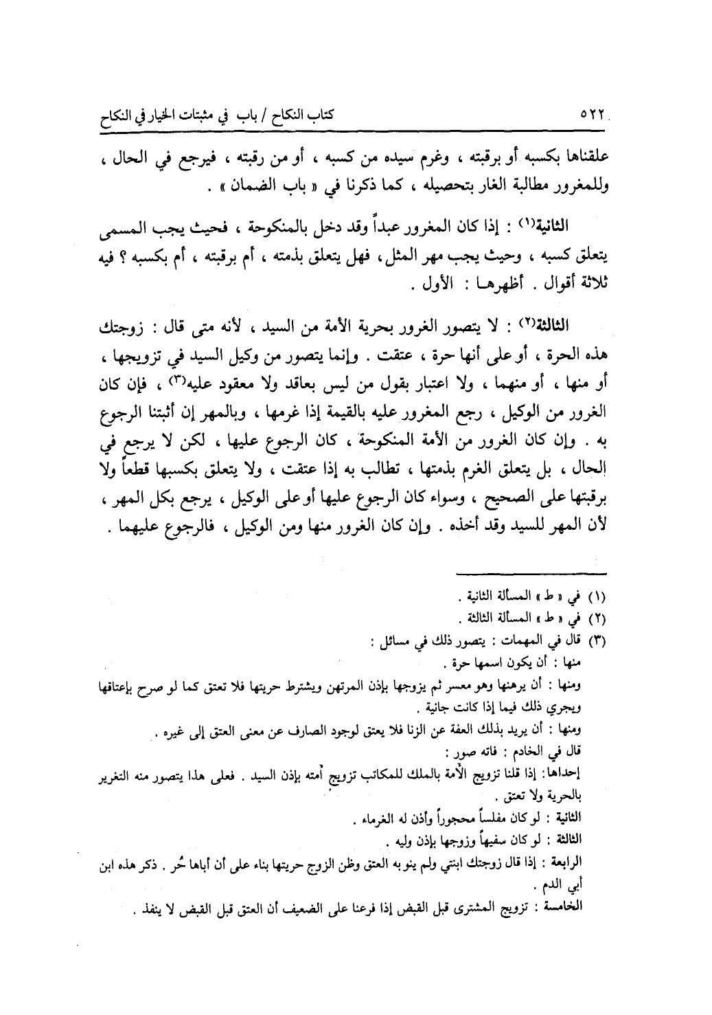علقناها بكسبه أو إسمعيل، وغرم سيده من كسبه، أو من رقبته، فيرجع في الحال، وللمغرور مطالبة الغار بتحصيله، كما ذكرنا في باب الضمان. المسألة الثانية: إذا كان المغرور عبدا وقد دخل بالمنكوحة، فحيث يجب المسمى يتعلق كسبه، وحيث يجب مهر المثل، فهل يتعلق بذمته، أم برقبته، أم بكسبه ؟ فيه ثلاثة أقوال. أظهرها: الاول. المسألة الثالثة: لا يتصور الغرور بحرية الامة من السيد، لانه متى قال: زوجتك هذه الحرة، أو على أنها حرة، عتقت. وإنما يتصور من وكيل السيد في تزويجها، أو منها، أو منهما، ولا اعتبار بقول من ليس بعاقد ولا معقود عليه، فإن كان الغرور من الوكيل، رجع المغرور عليه بالقيمة إذا غرمها، وبالمهر إن أثبتنا الرجوع به. وإن كان الغرور من الامة المنكوحة، كان الرجوع عليها، لكن لا يرجع في الحال، بل يتعلق الغرم بذمتها، تطالب به إذا عتقت، ولا يتعلق بكسبها قطعا ولا برقبتها على الصحيح، وسواء كان الرجوع عليها أو على الوكيل، يرجع بكل المهر، لان المهر للسيد وقد أخذه. وإن كان الغرور منها ومن الوكيل، فالرجوع عليهما.