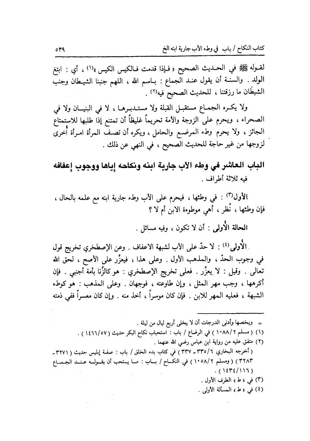 الباب العاشر : في وطئ الاب جارية ابنه ونكاحه إياها ووجوب إعفافه فيه ثلاثة أطراف.
