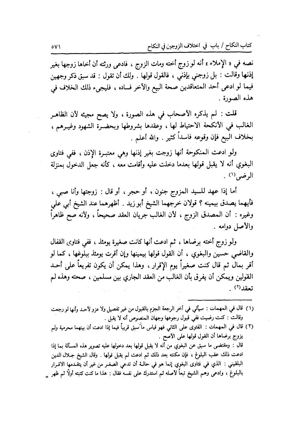 نصه في الاملاء أنه لو زوج أخته ومات الزوج، فادعى ورثته أن أخاها زوجها بغير إذنها وقالت: بل زوجني بإذني، فالقول قولها. ولك أن تقول: قد سبق ذكر وجهين فيما لو ادعى أحد المتعاقدين صحة البيع والآخر فساده، فليجئ ذلك الخلاف في هذه الصورة. قلت: لم يذكره الاصحاب في هذه الصورة، ولا يصح مجيئه لان الظاهر الغالب في الانكحة الاحتياط لها، وعقدها بشروطها وبحضرة الشهود وغيرهم، بخلاف البيع فإن وقوعه فاسد كثير. والله أعلم. ولو ادعت المنكوحة أنها زوجت بغير إذنها وهي معتبرة الاذن، ففي فتاوى البغوي أنه لا يقبل قولها بعد ما دخلت عليه وأقامت معه، كأنه جعل الدخول بمنزلة الرضى. أما إذا عهد للسيد المزوج جنون، أو حجر، أو قال: زوجتها وأنا صبي، فأيهما يصدق بيمينه ؟ قولان خرجهما الشيخ أبو زيد. أظهرهما عند الشيخ أبي علي وغيره: أن المصدق الزوج، لان الغال ب جريان العقد صحيحا، ولانه صح ظاهرا والاصل دوامه. ولو زوج أخته برضاها، ثم ادعت أنها كانت صغيرة يومئذ، ففي فتاوى القفال والقاضي حسين والبغوي، أن القول قولها بيمينها وإن أقرت يومئذ ببلوغها، كما لو أقر بمال ثم قال: كنت صغيرا يوم الاقرار، وهذا يمكن أن يكون تفريعا على أحد القولين ويمكن أن يفرق بأن الغالب من العقد الجاري بين مسلمين، صحته وهذه لم تعقد.