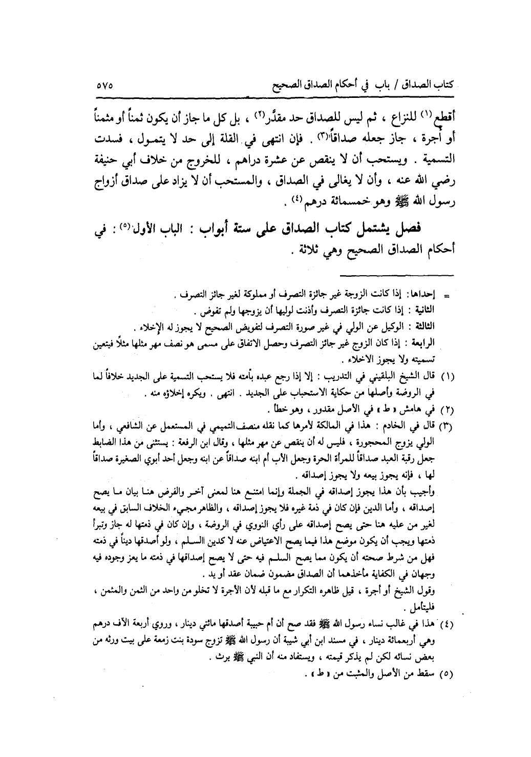 الباب الأول : في أحكام الصداق الصحيح وهي ثلاثة.