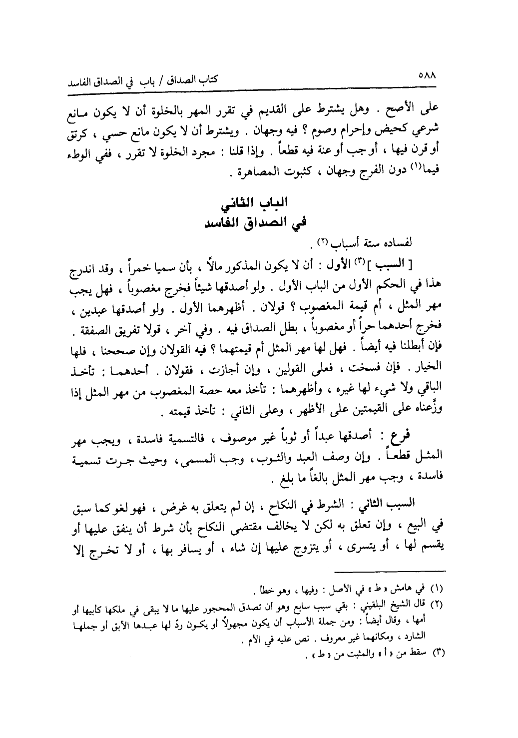 الباب الثاني : في الصداق الفاسد لفساده ستة أسباب.