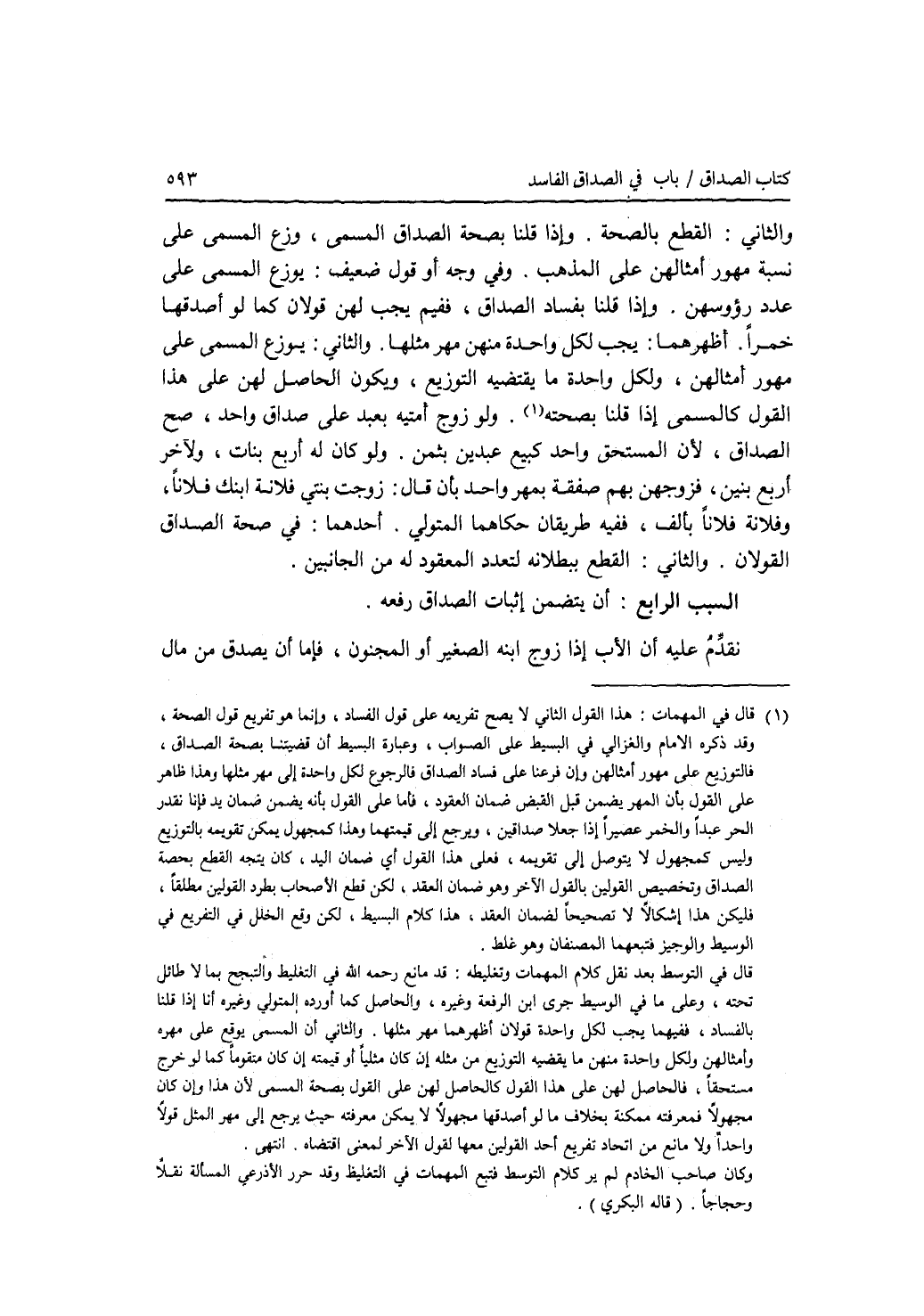 السبب الرابع : أن يتضمن إثبات الصداق رفعه. نقدم عليه أن الاب إذا زوج ابنه الصغير أو المجنون، فإما أن يصدق من مال