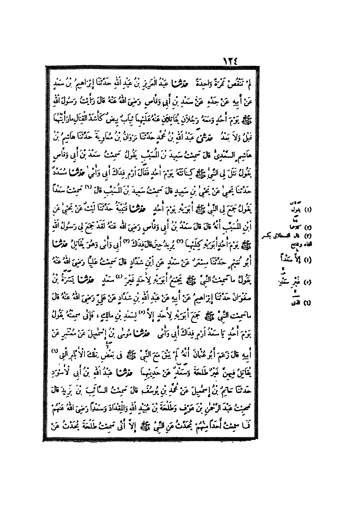 4060 و4061- حَدَّثَنَا مُوسَى بْنُ إِسْمَاعِيلَ ، عَنْ مُعْتَمِرٍ ، عَنْ أَبِيهِ ، قَالَ : زَعَمَ أَبُو عُثْمَانَ , أَنَّهُ لَمْ يَبْقَ مَعَ النَّبِيِّ صَلَّى اللَّهُ عَلَيْهِ وَسَلَّمَ فِي بَعْضِ تِلْكَ الأَيَّامِ الَّتِي يُقَاتِلُ فِيهِنَّ غَيْرُ طَلْحَةَ وَسَعْدٍ عَنْ حَدِيثِهِمَا.