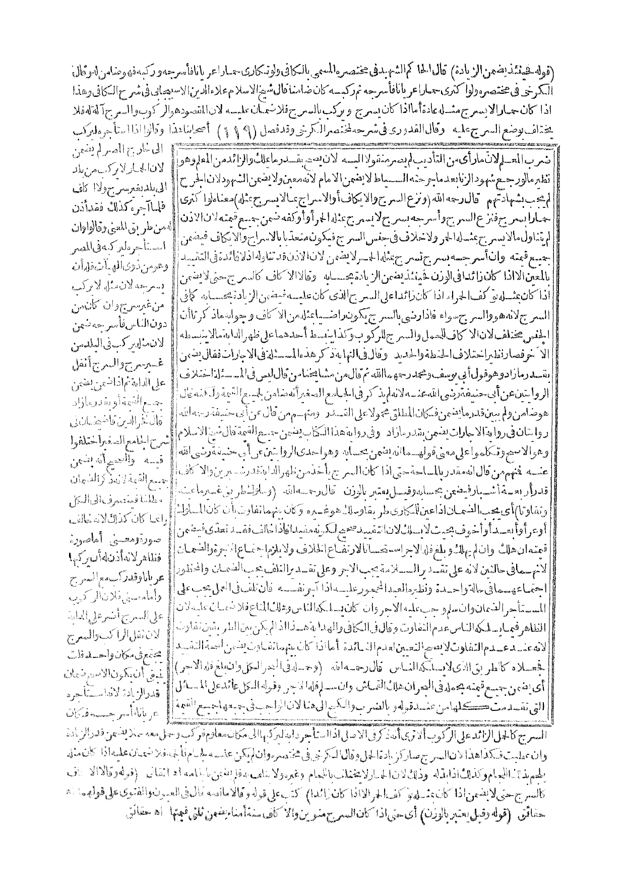ـــــــــــــــــــــــــــــQقَوْلُهُ فَحِينَئِذٍ يَضْمَنُ الزِّيَادَةَ) قَالَ الْحَاكِمُ الشَّهِيدُ فِي مُخْتَصَرِهِ الْمُسَمَّى بِالْكَافِي وَلَوْ تَكَارَى حِمَارًا عُرْيَانَا فَأَسْرَجَهُ وَرَكِبَهُ فَهُوَ ضَامِنٌ لَهُ، وَقَالَ الْكَرْخِيُّ فِي مُخْتَصَرِهِ وَلَوْ اكْتَرَى حِمَارًا عُرْيَانَا فَأَسْرَجَهُ، ثُمَّ رَكِبَهُ كَانَ ضَامِنًا قَالَ شَيْخُ الْإِسْلَامِ عَلَاءُ الدِّينِ الْإِسْبِيجَابِيُّ فِي شَرْحِ الْكَافِي وَهَذَا إذَا كَانَ حِمَارًا لَا يُسْرَجُ مِثْلُهُ عَادَةً،