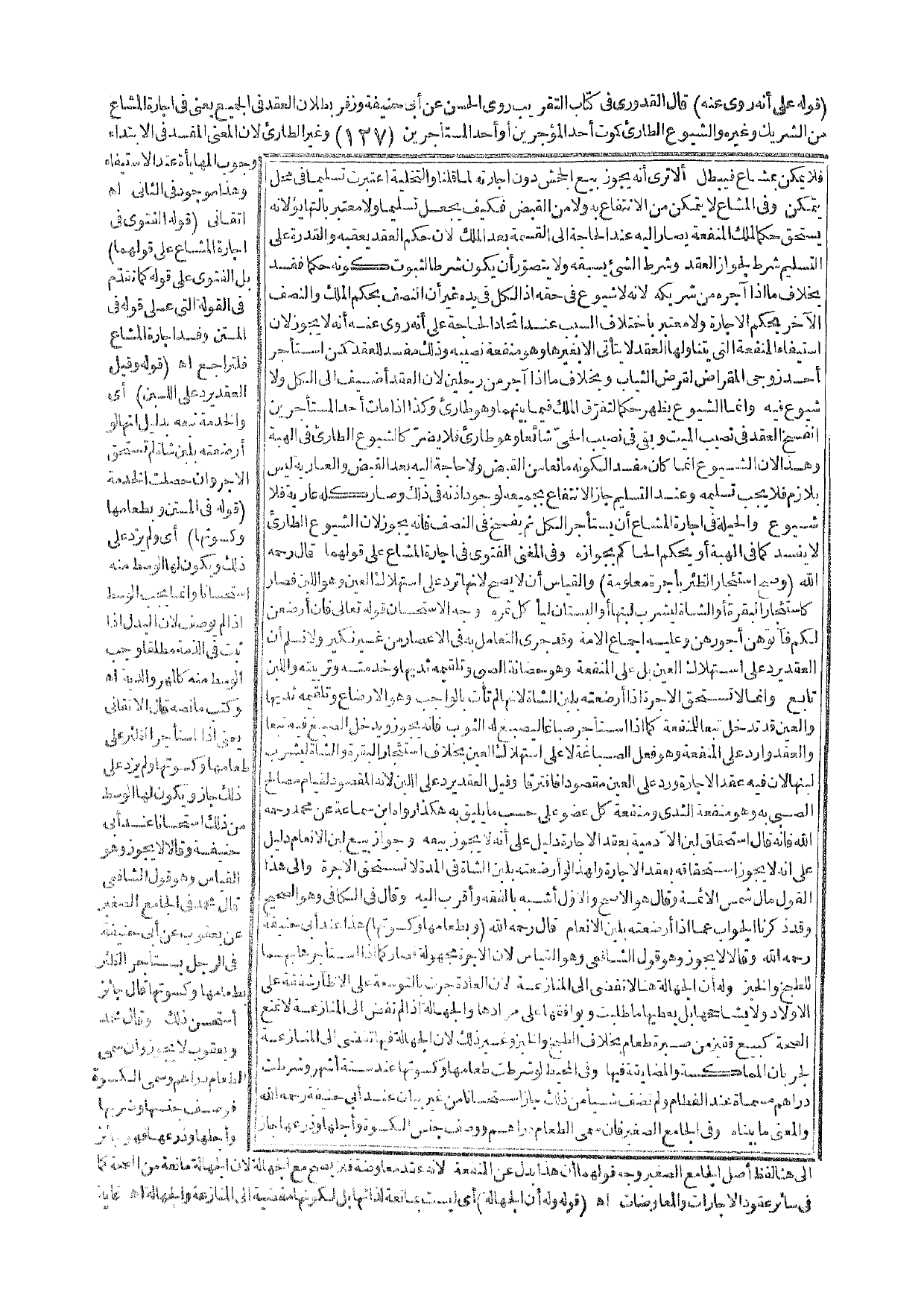 ـــــــــــــــــــــــــــــQقَوْلُهُ عَلَى أَنَّهُ رُوِيَ عَنْهُ) قَالَ الْقُدُورِيُّ فِي كِتَابِ التَّقْرِيبِ رَوَى الْحَسَنُ عَنْ أَبِي حَنِيفَةَ وَزُفَرَ بُطْلَانَ الْعَقْدِ فِي الْجَمِيعِ يَعْنِي فِي إجَارَةِ الْمَشَاعِ مِنْ الشَّرِيكِ وَغَيْرِهِ وَالشُّيُوعِ الطَّارِئِ كَمَوْتِ أَحَدِ الْمُؤَجِّرَيْنِ أَوْ أَحَدِ الْمُسْتَأْجَرِينَ وَغَيْرِ الطَّارِئِ؛ لِأَنَّ الْمَعْنَى الْمُفْسِدَ فِي الِابْتِدَاءِ وُجُوبُ الْمُهَايَأَةِ عِنْدَ الِاسْتِيفَاءِ، وَهَذَا مَوْجُودٌ فِي الثَّانِي. اهـ. أَتْقَانِيٌّ.