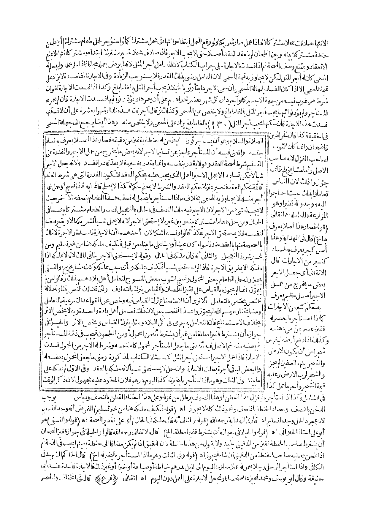 ـــــــــــــــــــــــــــــQالِانْتِهَاءِ صَادَفَتْ مَحَلًّا مُشْتَرَكًا؛ لِأَنَّهُ إذَا عَمِلَ صَارَ شَرِيكًا، وَلَوْ وَقَعَ الْعَمَلُ ابْتِدَاءً وَانْتِهَاءً فِي مَحَلٍّ مُشْتَرَكٍ كَمَا لَوْ اُسْتُؤْجِرَ لِحَمْلِ طَعَامٍ مُشْتَرَكٍ أَوْ لِطَحْنِ حِنْطَةٍ مُشْتَرَكَةٍ بَيْنَهُ وَبَيْنَ الطَّحَّانِ لَمْ يَنْعَقِدْ الْعَقْدُ أَصْلًا حَتَّى لَا يَجِبَ الْأَجْرُ فَإِذَا صَادَفَ مَحَلًّا غَيْرَ مُشْتَرَكٍ ابْتِدَاءً وَمُشْتَرَكًا انْتِهَاءً لَا يَمْنَعُ الِانْعِقَادَ وَيَمْتَنِعُ وَصْفُ الصِّحَّةِ ثُمَّ إذَا فَسَدَتْ الْإِجَارَةُ عَلَى جَوَابِ الْكِتَابِ كَانَ لِلْعَامِلِ أَجْرُ الْمِثْلِ؛ لِأَنَّهُ لَمْ يَرْضَ بِعَمَلِهِ مَجَّانًا فَإِذَا سَلَّمَ عَمَلَهُ وَلَمْ يُسَلِّمْ لَهُ الْمُسَمَّى كَانَ لَهُ أَجْرُ الْمِثْلِ لَكِنْ لَا يُجَاوِزُ بِهِ قِيمَةَ الْمُسَمَّى؛ لِأَنَّ الْعَامِلَ رَضِيَ بِذَلِكَ الْقَدْرِ فَلَا يَسْتَوْجِبُ الزِّيَادَةَ، وَفِي الْإِجَارَةِ الْفَاسِدَةِ لَا يُزَادُ عَلَى قِيمَةِ الْمُسَمَّى إلَّا إذَا كَانَ الْفَسَادُ لِجَهَالَةِ الْمُسَمَّى بِأَنْ سَمَّى الْأَجْرَ دَابَّةً أَوْ ثَوْبًا فَحِينَئِذٍ يَجِبُ أَجْرُ الْمِثْلِ بَالِغًا مَا بَلَغَ، وَكَذَا إذَا فَسَدَتْ الْإِجَارَةُ لِفَوَاتِ شَرْطٍ مَرْغُوبٍ فِيهِ مِنْ جِهَةِ الْأَجِيرِ كَمَا لَوْ آجَرَ دَارِهِ كُلَّ شَهْرٍ بِعَشَرَةِ دَرَاهِمَ عَلَى أَنْ يَعْمُرَهَا وَيُؤَدِّيَ نَوَائِبَهَا فَسَدَتْ الْإِجَارَةُ، فَإِنْ لَمْ يَعْمُرْهَا الْمُسْتَأْجِرُ، وَلَمْ يُؤَدِّ نَوَائِبَهَا يَجِبُ أَجْرُ الْمِثْلِ بَالِغًا مَا بَلَغَ وَلَا يَنْقُصُ عَنْ الْمُسَمَّى، وَكَذَلِكَ لَوْ قَالَ آجَرْتُك هَذِهِ الدَّارَ شَهْرًا بِعَشَرَةٍ عَلَى أَنْ لَا تَسْكُنَهَا فَسَدَتْ هَذِهِ الْإِجَارَةُ، فَإِنْ سَكَنَهَا يَجِبُ أَجْرُ الْمِثْلِ بَالِغًا مَا بَلَغَ يُزَادُ عَلَى الْمُسَمَّى وَلَا يَنْقُصُ مِنْهُ، وَهَذَا أَيْضًا يَرْجِعُ إلَى جَهَالَةِ الْمُسَمَّى فِي الْحَقِيقَةِ. كَذَا قَالَ فَخْرُ الدِّينِ قَاضِيخَانْ، وَإِنَّمَا كَانَ الثَّوْبُ لِصَاحِبِ الْغَزْلِ؛ لِأَنَّهُ صَاحِبُ الْأَصْلِ وَأَمَّا مَشَايِخُ بَلْخٍ فَإِنَّمَا جَوَّزُوا ذَلِكَ؛ لِأَنَّ النَّاسَ تَعَامَلُوا بِذَلِكَ حَيْثُ احْتَاجُوا إلَيْهِ وَوَجَدُوا لَهُ نَظِيرًا وَهُوَ الْمُزَارَعَةُ وَالْمُعَامَلَةُ. اهـ. أَتْقَانِيٌّ.