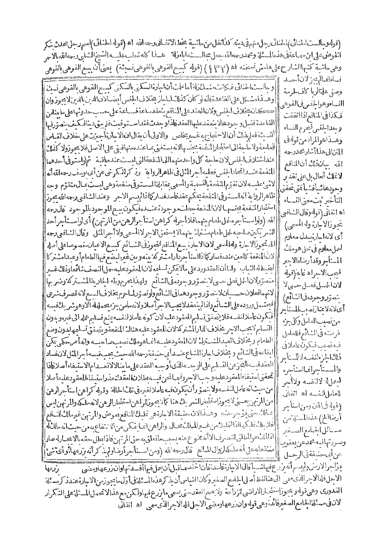 (قَوْلُهُ كَبَيْعِ الْقُوهِيِّ بِالْقُوهِيِّ نَسِيئَةً) يَعْنِي أَنَّ بَيْعَ الْقُوهِيِّ بِالْقُوهِيِّ نَسَاءً إنَّمَا لَمْ يَجُزْ؛ لِأَنَّ أَحَدَ وَصْفَيْ عِلَّةِ الرِّبَا كَافٍ لِحُرْمَةِ النَّسَاءِ وَهُوَ الْجِنْسُ فِي الْقُوهِيِّ فَكَذَا فِي الْمَنَافِعِ إذَا اتَّفَقَتْ وُجِدَ الْجِنْسُ فَيَحْرُمُ النَّسَاءُ، وَهَذَا هُوَ الْمُرَادُ مِنْ قَوْلِهِ فِي الْمَتْنِ إلَى هَذَا أَشَارَ مُحَمَّدٌ، - رَحِمَهُ اللَّهُ - بَيَانُ ذَلِكَ أَنَّ الْمَنَافِعَ لَا تُمْلَكُ لِلْحَالِ بَلْ عَلَى تَقْدِيرِ وُجُودِهَا شَيْئًا فَشَيْئًا فَمَتَى تَحَقَّقَ التَّأْخِيرُ ثَبَتَ مَعْنَى النَّسَاءِ. اهـ. أَتْقَانِيٌّ