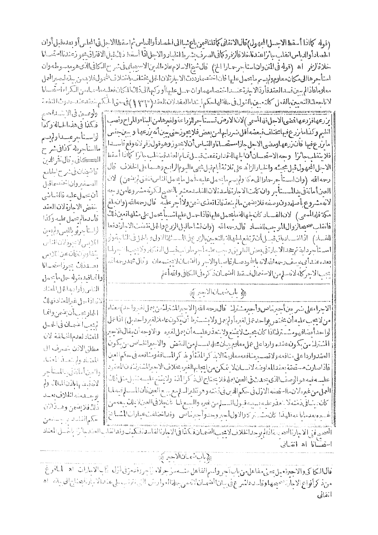 (بَابُ ضَمَانِ الْأَجِيرِ) الْأُجَرَاءُ عَلَى ضَرْبَيْنِ أَجِيرٌ خَاصٌّ وَأَجِيرٌ مُشْتَرَكٌ قَالَ - رَحِمَهُ اللَّهُ - (الْأَجِيرُ الْمُشْتَرَكُ مَنْ يَعْمَلُ لِغَيْرِ وَاحِدٍ) مَعْنَاهُ مَنْ لَا يَجِبُ عَلَيْهِ أَنْ يَخْتَصَّ بِوَاحِدٍ عَمِلَ لِغَيْرِهِ أَوْ لَمْ يَعْمَلْ (وَلَا يُشْتَرَطُ أَنْ يَكُونَ عَامِلًا لِغَيْرِ وَاحِدٍ بَلْ) إذَا عَمِلَ لِوَاحِدٍ أَيْضًا فَهُوَ مُشْتَرَكٌ إذَا كَانَ بِحَيْثُ لَا يَمْتَنِعُ وَلَا يَتَعَذَّرُ عَلَيْهِ أَنْ يَعْمَلَ لِغَيْرِهِ وَالْأَوْجَهُ أَنْ يُقَالَ الْأَجِيرُ الْمُشْتَرَكُ مَنْ يَكُونُ عَقْدُهُ وَارِدًا وَعَلَى عَمَلٍ مَعْلُومٍ بِبَيَانِ مَحِلِّهِ لِيَسْلَمَ مِنْ النَّقْضِ، وَالْأَجِيرُ الْخَاصُّ مَنْ يَكُونُ الْعَقْدُ وَارِدًا عَلَى مَنَافِعِهِ وَلَا تَصِيرُ مَنَافِعُهُ مَعْلُومَةً إلَّا بِذِكْرِ الْمُدَّةِ أَوْ بِذِكْرِ الْمَسَافَةِ وَمَنَافِعُهُ فِي حُكْمِ الْعَيْنِ، فَإِذَا صَارَتْ مُسْتَحَقَّةٌ بِعَقْدِ الْمُعَاوَضَةِ لِإِنْسَانٍ لَا يُتَمَكَّنُ مِنْ إيجَابِهَا لِغَيْرِهِ بِخِلَافِ الْأَجِيرِ الْمُشْتَرَكِ لِأَنَّ الْمَعْقُودَ عَلَيْهِ فِيهِ هُوَ الْوَصْفُ الَّذِي يَحْدُثُ فِي الْعَيْنِ بِعَمَلِهِ فَلَا يُحْتَاجُ إلَى ذِكْرِهِ الْمُدَّةَ وَلَا يَمْتَنِعُ عَلَيْهِ تَقَبُّلُ مِثْلِ ذَلِكَ الْعَمَلِ مِنْ غَيْرِهِ؛ لِأَنَّ مَا اسْتَحَقَّهُ الْأَوَّلُ فِي حُكْمِ الدَّيْنِ فِي ذِمَّتِهِ وَهُوَ نَظِيرُ السَّلَمِ مَعَ بَيْعِ الْعَيْنِ فَإِنَّ الْمُسْلَمَ فِيهِ لَمَّا كَانَ دَيْنًا فِي ذِمَّتِهِ لَا يَتَعَذَّرُ عَلَيْهِ بِسَبَبِهِ قَبُولُ السَّلَمِ مِنْ غَيْرِهِ وَالْبَيْعُ لَمَّا كَانَ يُلَاقِي الْعَيْنَ لَا يَمْلِكُ بَيْعَهُ مِنْ غَيْرِهِ بَعْدَ مَا بَاعَهُ فَلِهَذَا كَانَ مُشْتَرَكًا وَالْأَوَّلُ أَجِيرٌ وَاحِدٌ وَأَجِيرٌ خَاصٌّ، وَقَدْ اخْتَلَفَتْ عِبَارَاتُ الْمَشَايِخِ