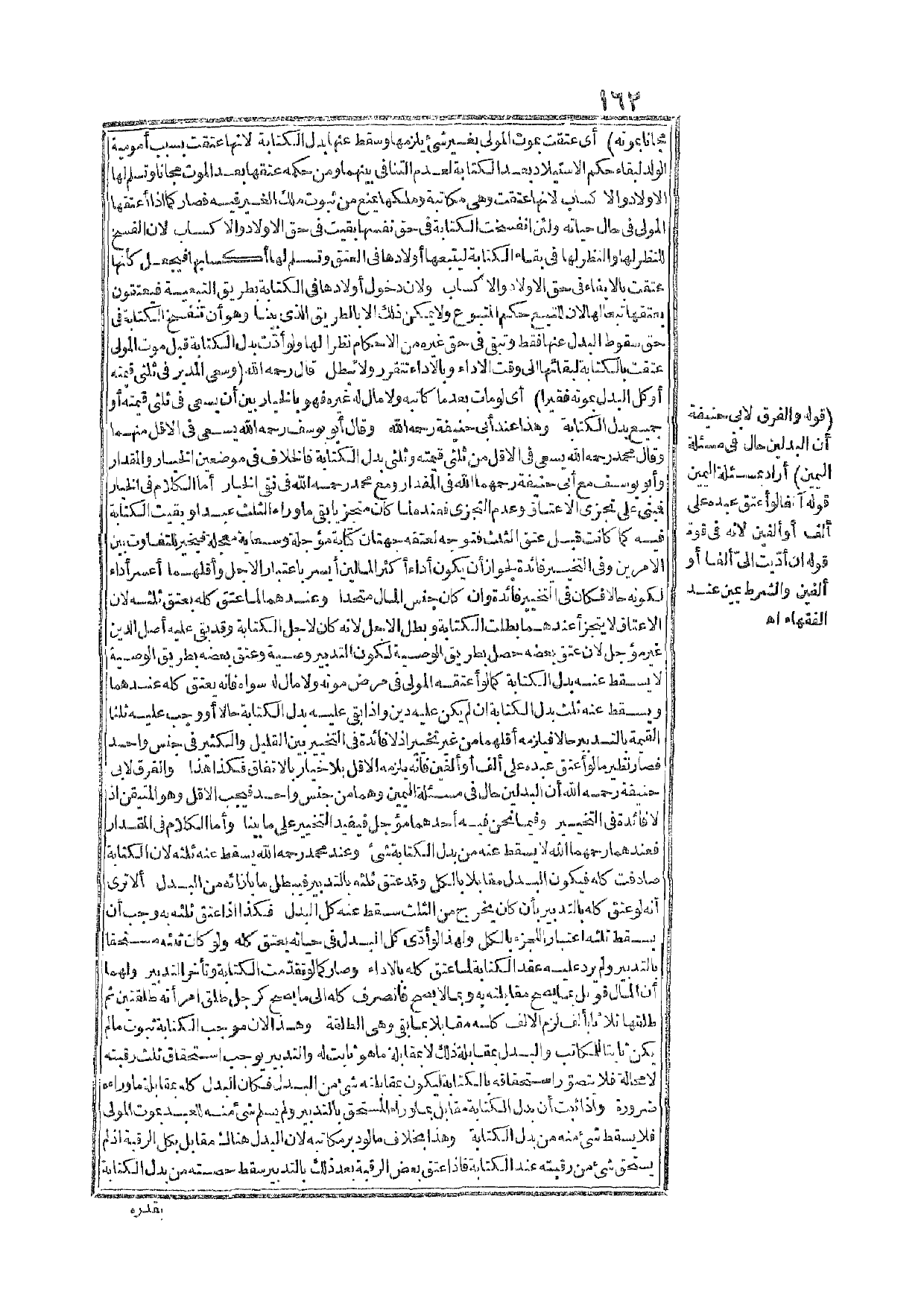 وَفِي التَّخْيِيرِ فَائِدَةٌ لِجَوَازِ أَنْ يَكُونَ أَدَاءُ أَكْثَرِ الْمَالَيْنِ أَيْسَرَ بِاعْتِبَارِ الْأَجَلِ وَأَقَلُّهُمَا أَعْسَرَ أَدَاءً لِكَوْنِهِ حَالًّا فَكَانَ فِي التَّخْيِيرِ فَائِدَةٌ وَإِنْ كَانَ جِنْسُ الْمَالِ مُتَّحِدًا وَعِنْدَهُمَا لَمَّا عَتَقَ كُلُّهُ بِعِتْقِ ثُلُثِهِ؛ لِأَنَّ الْإِعْتَاقَ لَا يَتَجَزَّأُ عِنْدَهُمَا بَطَلَتْ الْكِتَابَةُ وَبَطَلَ الْأَجَلُ؛ لِأَنَّهُ كَانَ لِأَجْلِ الْكِتَابَةِ وَقَدْ بَقِيَ عَلَيْهِ أَصْلُ الدِّينِ غَيْرَ مُؤَجَّلٍ؛ لِأَنَّ عِتْقَ بَعْضِهِ حَصَلَ بِطَرِيقِ الْوَصِيَّةِ لِكَوْنِ التَّدْبِيرِ وَصِيَّةً وَعِتْقُ بَعْضِهِ بِطَرِيقِ الْوَصِيَّةِ لَا يُسْقِطُ عَنْهُ بَدَلَ الْكِتَابَةِ كَمَا لَوْ أَعْتَقَهُ الْمَوْلَى فِي مَرَضِ مَوْتِهِ وَلَا مَالَ لَهُ سِوَاهُ فَإِنَّهُ يَعْتِقُ كُلُّهُ عِنْدَهُمَا وَيَسْقُطُ عَنْهُ ثُلُثُ بَدَلِ الْكِتَابَةِ إنْ لَمْ يَكُنْ عَلَيْهِ دَيْنٌ وَإِذَا بَقِيَ عَلَيْهِ بَدَلُ الْكِتَابَةِ حَالًّا أَوْ وَجَبَ عَلَيْهِ ثُلُثَا الْقِيمَةِ بِالتَّدْبِيرِ حَالًّا فَيَلْزَمُهُ أَقَلُّهُمَا مِنْ غَيْرِ تَخْيِيرٍ؛ إذْ لَا فَائِدَةَ فِي التَّخْيِيرِ بَيْنَ الْقَلِيلِ وَالْكَثِيرِ فِي جِنْسٍ وَاحِدٍ فَصَارَ نَظِيرَ مَا لَوْ أَعْتَقَ عَبْدَهُ عَلَى أَلْفٍ أَوْ أَلْفَيْنِ فَإِنَّهُ يَلْزَمُهُ الْأَقَلُّ بِلَا خِيَارٍ بِالِاتِّفَاقِ فَكَذَا هَذَا، وَالْفَرْقُ لِأَبِي حَنِيفَةَ - رَحِمَهُ اللَّهُ - أَنَّ الْبَدَلَيْنِ حَالٌّ فِي مَسْأَلَةِ الْيَمِينِ وَهُمَا مِنْ جِنْسٍ وَاحِدٍ فَيَجِبُ الْأَقَلُّ وَهُوَ الْمُتَيَقَّنُ إذْ لَا فَائِدَةَ فِي التَّخْيِيرِ وَفِيمَا نَحْنُ فِيهِ أَحَدُهُمَا مُؤَجَّلٌ فَيُفِيدُ التَّخْيِيرَ عَلَى مَا بَيَّنَّا.