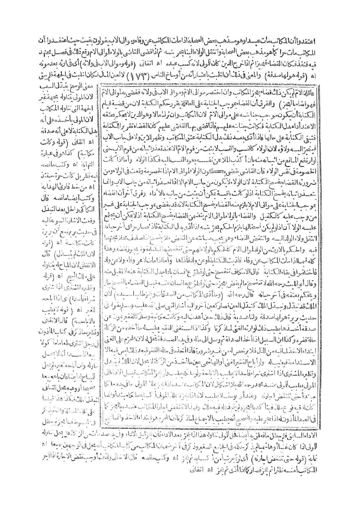 وَإِنَّمَا يَتَعَذَّرُ إثْبَاتُهُ بِفَسْخِ الْكِتَابَةِ إذْ لَوْ كَانَتْ بَاقِيَةً يُمْكِنُ أَنْ يَثْبُتَ مِنْ جَانِبِهِ بِالْأَدَاءِ وَفَرْقٌ آخَرُ أَنَّ الْقَضَاءَ بِمُوجِبِ الْجِنَايَةِ عَلَى مَوَالِي الْأُمِّ لَا يَلْزَمُ مِنْهُ الْقَضَاءُ بِفَسْخِ الْكِتَابَةِ؛ لِأَنَّهُ قَدْ يَقْضِي بِمُوجِبِ الْجِنَايَةِ عَلَى غَيْرِ مَنْ وَجَبَ عَلَيْهِ كَالْكَفِيلِ وَالْقَضَاءُ بِالْوَلَاءِ لِمَوَالِي الْأُمِّ يَتَضَمَّنُ الْقَضَاءُ بِفَسْخِ الْكِتَابَةِ إذْ لَا يُمْكِنُ أَنْ يَجْتَمِعَ عَلَيْهِ الْوِلَاءَانِ إذْ لَوْ لَمْ يَكُنْ فَسْخًا لَهَا يَلْزَمُ الْحُكْمُ بِحُرِّيَّتِهِ إذَا أَدَّى بَدَلَ الْكِتَابَةِ فَإِذَا صَارَ حُرًّا فِي آخِرِ حَيَاتِهِ انْتَقَلَ وَلَاءُ الْوَلَدِ إلَيْهِ وَانْتُقِضَ الْقَضَاءُ وَهُوَ يَجِبُ صِيَانَتُهُ عَنْ النَّقْضِ فَلَا يُفْسَخُ إذَا صَادَفَ مَحَلًّا مُجْتَهَدًا فِيهِ، وَالْحُكْمُ بِالْإِرْثِ مِنْ الْوَلَدِ لِمَوَالِي الْأُمِّ كَالْحُكْمِ بِالْوَلَاءِ لَهُمْ حَتَّى تَنْفَسِخَ بِهِ الْكِتَابَةُ وَلَا يَجُوزُ نَقْضُهُ وَهَذَا كُلُّهُ فِيمَا إذَا مَاتَ الْمُكَاتَبُ عَنْ وَفَاءٍ فَأَدَّيْت الْكِتَابَةُ أَوْ عَنْ وَلَدٍ فَأَدَّاهَا، وَأَمَّا إذَا مَاتَ لَا عَنْ وَفَاءٍ وَلَا عَنْ وَلَدٍ فَاخْتَلَفُوا فِي بَقَاءِ الْكِتَابَةِ، قَالَ الْإِسْكَافُ تَنْفَسِخُ حَتَّى لَوْ تَطَوَّعَ إنْسَانٌ بِأَدَاءِ بَدَلِ الْكِتَابَةِ عَنْهُ لَا تُقْبَلُ مِنْهُ وَقَالَ أَبُو اللَّيْثِ - رَحِمَهُ اللَّهُ - لَا تَنْفَسِخُ مَا لَمْ يُقْضَ بِعَجْزِهِ حَتَّى لَوْ تَطَوَّعَ بِهِ إنْسَانٌ عَنْهُ قَبْلَ الْقَضَاءِ بِالْفَسْخِ جَازَ وَيُحْكَمُ بِعِتْقِهِ فِي آخِرِ حَيَاتِهِ.