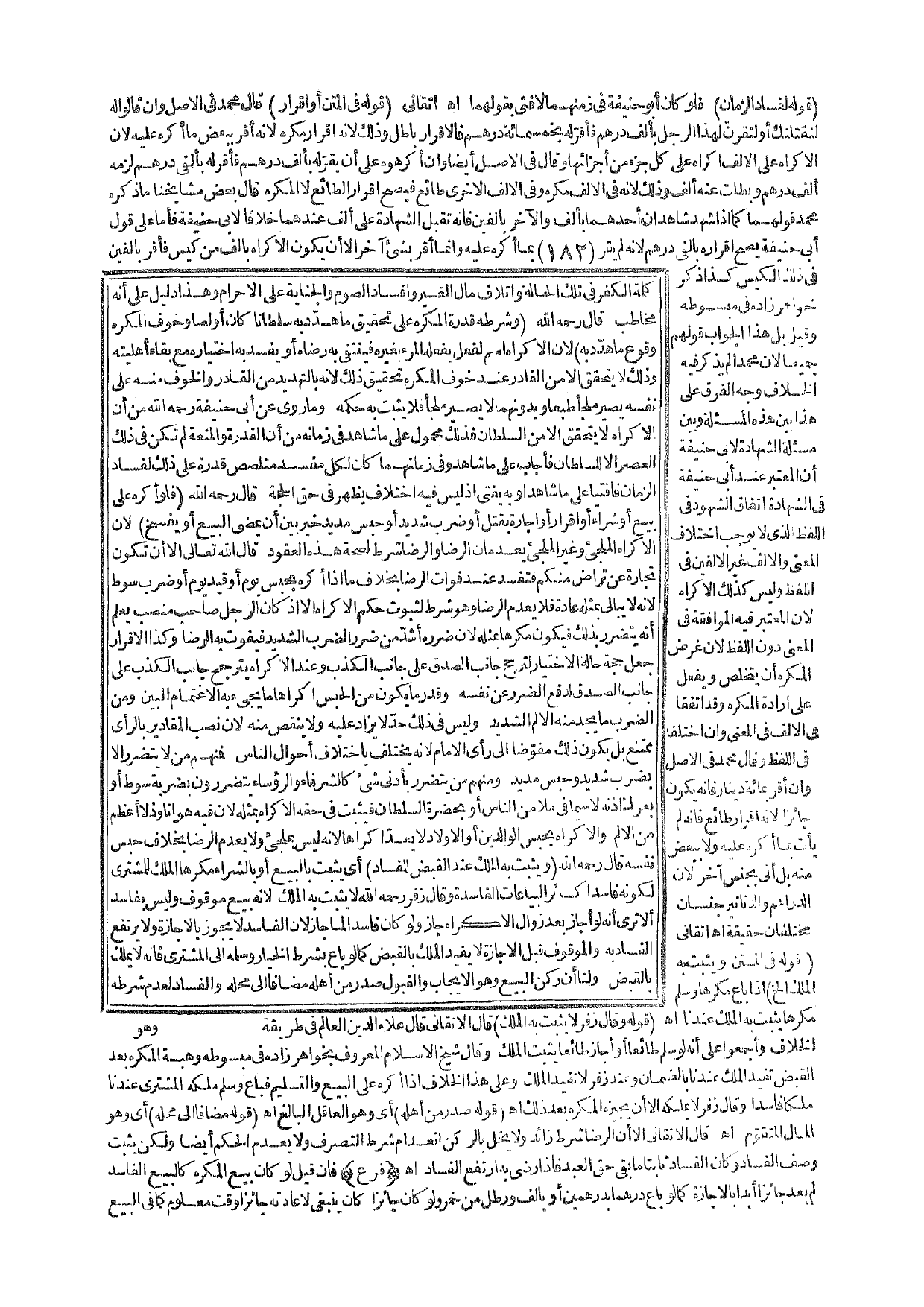 (قَوْلُهُ فِي الْمَتْنِ أَوْ إقْرَارٍ) قَالَ مُحَمَّدٌ فِي الْأَصْلِ وَإِنْ قَالُوا لَهُ: لَنَقْتُلَنَّكَ أَوْ لَتُقِرَّنَّ لِهَذَا الرَّجُلِ بِأَلْفِ دِرْهَمٍ فَأَقَرَّ لَهُ بِخَمْسِمِائَةِ دِرْهَمٍ فَالْإِقْرَارُ بَاطِلٌ وَذَلِكَ؛ لِأَنَّهُ إقْرَارُ مُكْرَهٍ؛ لِأَنَّهُ أَقَرَّ بِبَعْضِ مَا أُكْرِهَ عَلَيْهِ؛ لِأَنَّ الْإِكْرَاهَ عَلَى الْأَلْفِ إكْرَاهٌ عَلَى كُلِّ جُزْءٍ مِنْ أَجْزَائِهَا، وَقَالَ فِي الْأَصْلِ أَيْضًا وَإِنْ أَكْرَهُوهُ عَلَى أَنْ يُقِرَّ لَهُ بِأَلْفِ دِرْهَمٍ فَأَقَرَّ لَهُ بِأَلْفَيْ دِرْهَمٍ لَزِمَهُ أَلْفُ دِرْهَمٍ وَبَطَلَتْ عَنْهُ أَلْفٌ وَذَلِكَ؛ لِأَنَّهُ فِي الْأَلْفِ مُكْرَهٌ وَفِي الْأَلْفِ الْأُخْرَى طَائِعٌ فَيَصِحُّ إقْرَارُ الطَّائِعِ لَا الْمُكْرَهُ قَالَ بَعْضُ مَشَايِخِنَا مَا ذَكَرَهُ مُحَمَّدٌ قَوْلُهُمَا كَمَا إذَا شَهِدَ شَاهِدٌ أَنَّ أَحَدَهُمَا بِأَلْفٍ وَالْآخَرُ بِأَلْفَيْنِ فَإِنَّهُ تُقْبَلُ الشَّهَادَةُ عَلَى أَلْفٍ عِنْدَهُمَا خِلَافًا لِأَبِي حَنِيفَةَ فَأَمَّا عَلَى قَوْلِ أَبِي حَنِيفَةَ يَصِحُّ إقْرَارُهُ بِأَلْفَيْ دِرْهَمٍ؛ لِأَنَّهُ لَمْ يُقِرَّ بِمَا أُكْرِهَ عَلَيْهِ وَإِنَّمَا أَقَرَّ بِشَيْءٍ آخَرَ إلَّا أَنْ يَكُونَ الْإِكْرَاهُ بِأَلْفٍ مِنْ كِيسٍ فَأَقَرَّ بِأَلْفَيْنِ فِي ذَلِكَ الْكِيسِ كَذَا ذَكَرَ خُوَاهَرْزَادَهْ فِي مَبْسُوطِهِ، وَقِيلَ بَلْ هَذَا الْجَوَابُ قَوْلُهُمْ جَمِيعًا؛ لِأَنَّ مُحَمَّدًا لَمْ يَذْكُرْ فِيهِ الْخِلَافَ.