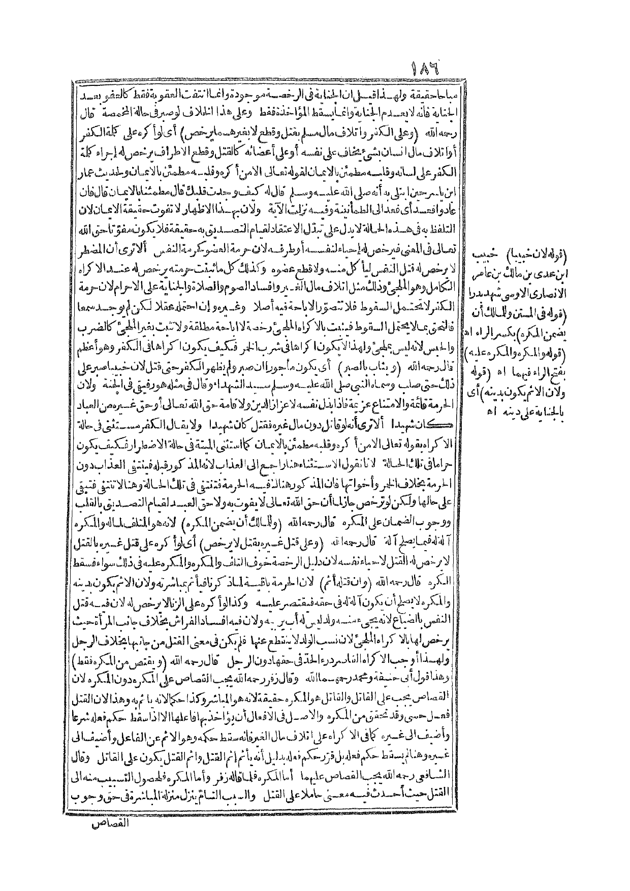 أَلَا تَرَى أَنَّ الْمُضْطَرَّ لَا يُرَخَّصُ لَهُ قَتْلُ النَّفْسِ لِيَأْكُلَ مِنْهُ وَلَا قَطْعُ عُضْوِهِ، وَكَذَلِكَ كُلُّ مَا ثَبَتَتْ حُرْمَتُهُ يُرَخَّصُ لَهُ عِنْدَ الْإِكْرَاهِ الْكَامِلِ وَهُوَ الْمُلْجِئُ، وَذَلِكَ مِثْلُ إتْلَافِ مَالِ الْغَيْرِ وَإِفْسَادِ الصَّوْمِ وَالصَّلَاةِ وَالْجِنَايَةِ عَلَى الْإِحْرَامِ؛ لِأَنَّ حُرْمَةَ الْكُفْرِ لَا تَحْتَمِلُ السُّقُوطَ فَلَا تُتَصَوَّرُ الْإِبَاحَةُ فِيهِ أَصْلًا وَغَيْرُهُ وَإِنْ احْتَمَلَهُ عَقْلًا لَكِنْ لَمْ يُوجَدْ سَمْعًا فَالْتَحَقَ بِمَا لَا يَحْتَمِلُ السُّقُوطَ فَيَثْبُتُ بِالْإِكْرَاهِ الْمُلْجِئِ رُخْصَةً لَا إبَاحَةً مُطْلَقَةً وَلَا تَثْبُتُ بِغَيْرِ الْمُلْجِئِ كَالضَّرْبِ وَالْحَبْسِ؛ لِأَنَّهُ لَيْسَ بِمُلْجِئٍ وَلِهَذَا لَا يَكُونُ إكْرَاهًا فِي شُرْبِ الْخَمْرِ فَكَيْفَ يَكُونُ إكْرَاهًا فِي الْكُفْرِ وَهُوَ أَعْظَمُ.