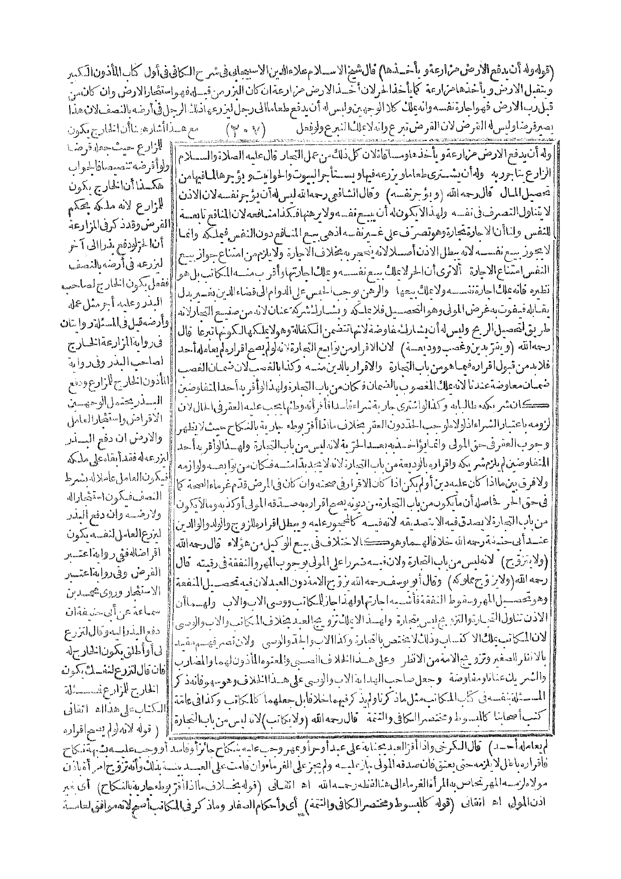 وَرَوَى مُحَمَّدُ بْنُ سِمَاعَةَ عَنْ أَبِي حَنِيفَةَ إنْ دَفَعَ الْبَذْرَ إلَيْهِ، وَقَالَ لِتَزْرَعَ لِي أَوْ أَطْلَقَ يَكُونُ الْخَارِجُ لَهُ فَإِنْ قَالَ لِتَزْرَعَ لِنَفْسِك يَكُونُ الْخَارِجُ لِلْمُزَارِعِ فَمَسْأَلَةُ الْكِتَابِ عَلَى هَذَا. اهـ أَتْقَانِيٌّ. (قَوْلُهُ: لِأَنَّهُ لَوْ لَمْ يَصِحَّ إقْرَارُهُ لَمْ يُعَامِلْهُ أَحَدٌ) قَالَ الْكَرْخِيُّ، وَإِذَا أَقَرَّ الْعَبْدُ بِجِنَايَةٍ عَلَى عَبْدٍ أَوْ حُرٍّ أَوْ بِمَهْرٍ وَجَبَ عَلَيْهِ بِنِكَاحٍ جَائِزٍ أَوْ فَاسِدٍ أَوْ وَجَبَ عَلَيْهِ بِشُبْهَةِ نِكَاحٍ فَإِقْرَارُهُ بَاطِلٌ لَا يَلْزَمُهُ حَتَّى يَعْتَنِيَ فَإِنْ صَدَّقَهُ الْمَوْلَى جَازَ عَلَيْهِ، وَلَمْ يَجُزْ عَلَى الْغُرَمَاءِ، وَإِنْ قَامَتْ عَلَى الْعَبْدِ بَيِّنَةٌ بِذَلِكَ، وَأَنَّهُ تَزَوَّجَ امْرَأَةً بِإِذْنِ مَوْلَاهُ لَزِمَهُ الْمَهْرُ تَحَاصُّ بِهِ الْمَرْأَةُ الْغُرَمَاءَ إلَى هُنَا لَفْظُهُ. - رَحِمَهُ اللَّهُ -. اهـ. أَتْقَانِيٌّ. (قَوْلُهُ: بِخِلَافِ مَا إذَا أَقَرَّ بِوَطْءِ جَارِيَةٍ بِالنِّكَاحِ) أَيْ بِغَيْرِ إذْنِ الْمَوْلَى. اهـ أَتْقَانِيٌّ.