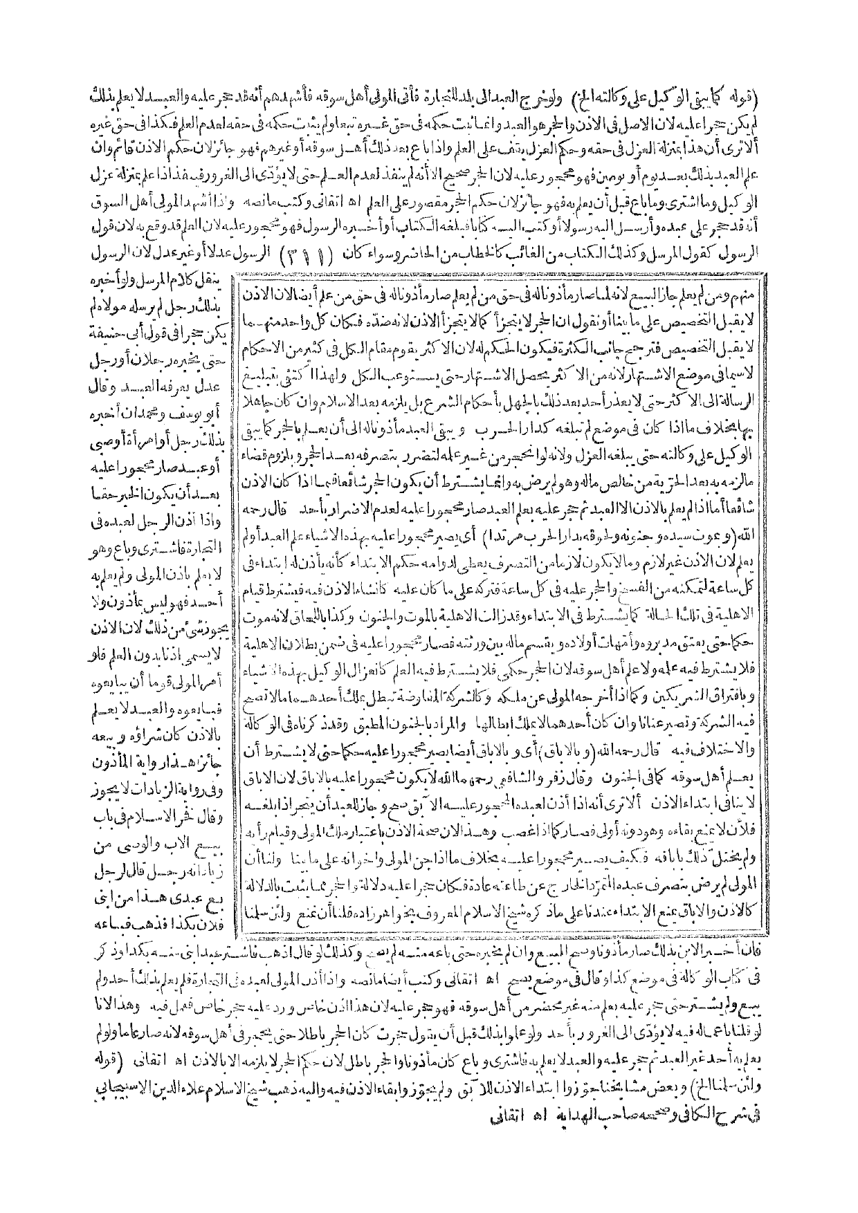 وَكَتَبَ مَا نَصُّهُ: وَإِذَا أَشْهَدَ الْمَوْلَى أَهْلَ السُّوقِ أَنَّهُ قَدْ حَجَرَ عَلَى عَبْدِهِ، وَأَرْسَلَ إلَيْهِ رَسُولًا أَوْ كَتَبَ إلَيْهِ كِتَابًا فَبَلَغَهُ الْكِتَابُ أَوْ أَخْبَرَهُ الرَّسُولُ فَهُوَ مَحْجُورٌ عَلَيْهِ؛ لِأَنَّ الْعِلْمَ قَدْ وَقَعَ بِهِ؛ لِأَنَّ قَوْلَ الرَّسُولِ كَقَوْلِ الْمُرْسِلِ، وَكَذَلِكَ الْكِتَابُ مِنْ الْغَائِبِ كَالْخِطَابِ مِنْ الْحَاضِرِ وَسَوَاءٌ كَانَ الرَّسُولُ عَدْلًا أَوْ غَيْرَ عَدْلٍ؛ لِأَنَّ الرَّسُولَ يَنْقُلُ كَلَامَ الْمُرْسِلِ، وَلَوْ أَخْبَرَهُ بِذَلِكَ رَجُلٌ لَمْ يُرْسِلْهُ مَوْلَاهُ لَمْ يَكُنْ حَجْرًا فِي قَوْلِ أَبِي حَنِيفَةَ حَتَّى يُخْبِرَهُ رَجُلَانِ أَوْ رَجُلٌ عَدْلٌ يَعْرِفُهُ الْعَبْدُ، وَقَالَ أَبُو يُوسُفَ وَمُحَمَّدٌ: إنْ أَخْبَرَهُ بِذَلِكَ رَجُلٌ أَوْ امْرَأَةٌ أَوْ صَبِيٌّ أَوْ عَبْدٌ صَارَ مَحْجُورًا عَلَيْهِ بَعْدَ أَنْ يَكُونَ الْخَبَرُ حَقًّا، وَإِذَا أَذِنَ الرَّجُلُ لِعَبْدِهِ فِي التِّجَارَةِ فَاشْتَرَى وَبَاعَ، وَهُوَ لَا يَعْلَمُ بِإِذْنِ الْمَوْلَى، وَلَمْ يَعْلَمُ بِهِ أَحَدٌ فَهُوَ لَيْسَ بِمَأْذُونٍ، وَلَا يَجُوزُ شَيْءٌ مِنْ ذَلِكَ؛ لِأَنَّ الْإِذْنَ لَا يُسَمَّى إذْنًا بِدُونِ الْعِلْمِ فَلَوْ أَمَرَ الْمَوْلَى قَوْمًا أَنْ يُبَايِعُوهُ فَبَايَعُوهُ وَالْعَبْدُ لَا يَعْلَمُ بِالْإِذْنِ كَانَ شِرَاؤُهُ وَبَيْعُهُ جَائِزًا هَذَا رِوَايَةُ الْمَأْذُونِ، وَفِي رِوَايَةِ الزِّيَادَاتِ لَا يَجُوزُ، وَقَالَ فَخْرُ الْإِسْلَامِ فِي بَابِ بَيْعِ الْأَبِ وَالْوَصِيِّ مِنْ زِيَادَاتِهِ رَجُلٌ قَالَ لِرَجُلٍ بِعْ عَبْدِي هَذَا مِنْ ابْنِي فُلَانٍ بِكَذَا فَذَهَبَ فَبَاعَهُ فَإِنْ أَخْبَرَ الِابْنَ بِذَلِكَ صَارَ مَأْذُونًا وَصَحَّ الْبَيْعُ، وَإِنْ لَمْ يُخْبِرْهُ حَتَّى بَاعَهُ مِنْهُ لَمْ يَصِحَّ، وَكَذَلِكَ لَوْ قَالَ اذْهَبْ فَاشْتَرِ عَبْدَ ابْنِي مِنْهُ بِكَذَا، وَذَكَرَ فِي كِتَابِ الْوَكَالَةِ فِي مَوْضِعِ كَذَا، وَقَالَ فِي مَوْضِعٍ يَصِحُّ. اهـ أَتْقَانِيٌّ.