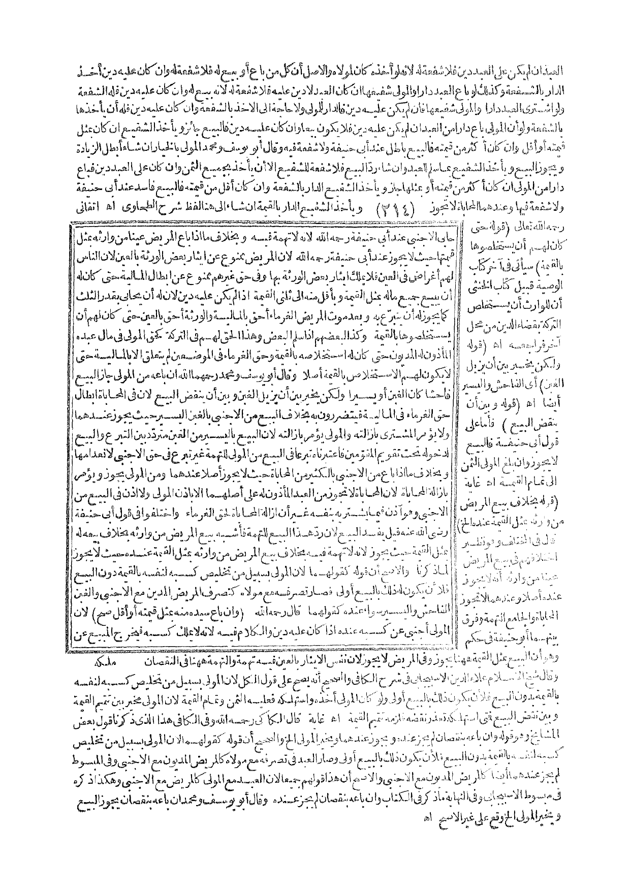 وَلَوْ أَنَّ الْمَوْلَى بَاعَ دَارًا مِنْ الْعَبْدِ إنْ لَمْ يَكُنْ عَلَيْهِ دَيْنٌ فَلَا يَكُونُ بَيْعًا، وَإِنْ كَانَ عَلَيْهِ دَيْنٌ فَالْبَيْعُ جَائِزٌ وَيَأْخُذُ الشَّفِيعُ إنْ كَانَ بِمِثْلِ قِيمَتِهِ أَوْ أَقَلَّ، وَإِنْ كَانَ أَكْثَرَ مِنْ قِيمَتِهِ فَالْبَيْعُ بَاطِلٌ عِنْدَ أَبِي حَنِيفَةَ، وَلَا شُفْعَةَ فِيهِ، وَقَالَ أَبُو يُوسُفَ وَمُحَمَّدٌ: الْمَوْلَى بِالْخِيَارِ إنْ شَاءَ أَبْطَلَ الزِّيَادَةَ وَيَجُوزُ الْبَيْعُ وَيَأْخُذُ الشَّفِيعُ بِمَا سَلَّمَ لِلْعَبْدِ، وَإِنْ شَاءَ رَدَّ الْبَيْعَ فَلَا شُفْعَةَ لِلشَّفِيعِ إلَّا أَنْ يَأْخُذَ بِجَمِيعِ الثَّمَنِ. وَإِنْ كَانَ عَلَى الْعَبْدِ دَيْنٌ فَبَاعَ دَارًا مِنْ الْمَوْلَى إنْ كَانَ أَكْثَرَ مِنْ قِيمَتِهِ أَوْ بِمِثْلِهَا جَازَ وَيَأْخُذُ الشَّفِيعُ الدَّارَ بِالشُّفْعَةِ، وَإِنْ كَانَ أَقَلَّ مِنْ قِيمَتِهِ فَالْبَيْعُ فَاسِدٌ عِنْدَ أَبِي حَنِيفَةَ، وَلَا شُفْعَةَ فِيهَا، وَعِنْدَهُمَا الْمُحَابَاةُ لَا تَجُوزُ وَيَأْخُذُ الشَّفِيعُ الدَّارَ بِالْقِيمَةِ إنْ شَاءَ إلَى هُنَا لَفْظُ شَرْحِ الطَّحَاوِيِّ. اهـ أَتْقَانِيٌّ - رَحِمَهُ اللَّهُ تَعَالَى -. (قَوْلُهُ: حَتَّى كَانَ لَهُمْ أَنْ يَسْتَخْلِصُوهَا بِالْقِيمَةِ) سَيَأْتِي فِي آخِرِ كِتَابِ الْوَصِيَّةِ قُبَيْلَ كِتَابِ الْخُنْثَى أَنَّ لِلْوَارِثِ أَنْ يَسْتَخْلِصَ التَّرِكَةَ بِقَضَاءِ الدَّيْنِ مِنْ مَحَلٍّ آخَرَ فَرَاجِعْهُ. اهـ.