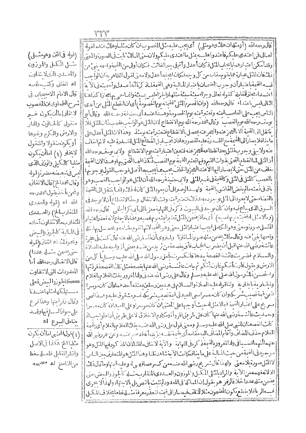 ـــــــــــــــــــــــــــــQقَوْلُهُ: فِي الْمَتْنِ وَهُوَ مِثْلِيٌّ) مِثْلُ الْمَكِيلِ وَالْمُوزِنِ وَالْمَعْدُودِ الَّذِي لَا يَتَفَاوَتُ. اهـ أَتْقَانِيٌّ، وَكَتَبَ مَا نَصُّهُ قَالَ الْإِمَامُ الْإِسْبِيجَابِيُّ فِي شَرْحِ الطَّحَاوِيِّ: إنَّ الْمَغْصُوبَ لَا يَخْلُو إمَّا أَنْ يَكُونَ غَيْرَ مَنْقُولٍ كَالْحَانُوتِ وَالدَّارِ وَالْأَرْضِ وَالْكَرْمِ وَغَيْرِهَا أَوْ يَكُونُ مَنْقُولًا وَالْمَنْقُولُ لَا يَخْلُو إمَّا أَنْ يَكُونَ مِثْلِيًّا كَالْكَيْلِيِّ وَالْوَزْنِيِّ الَّذِي لَيْسَ فِي تَبْعِيضِهِ مَضَرَّةٌ (قَوْلُهُ: وَقَالَ مُحَمَّدٌ إلَخْ) قَالَ الْأَتْقَانِيُّ وَنَحْنُ نَأْخُذُ بِقَوْلِ مُحَمَّدٍ - رَحِمَهُ اللَّهُ -. اهـ.