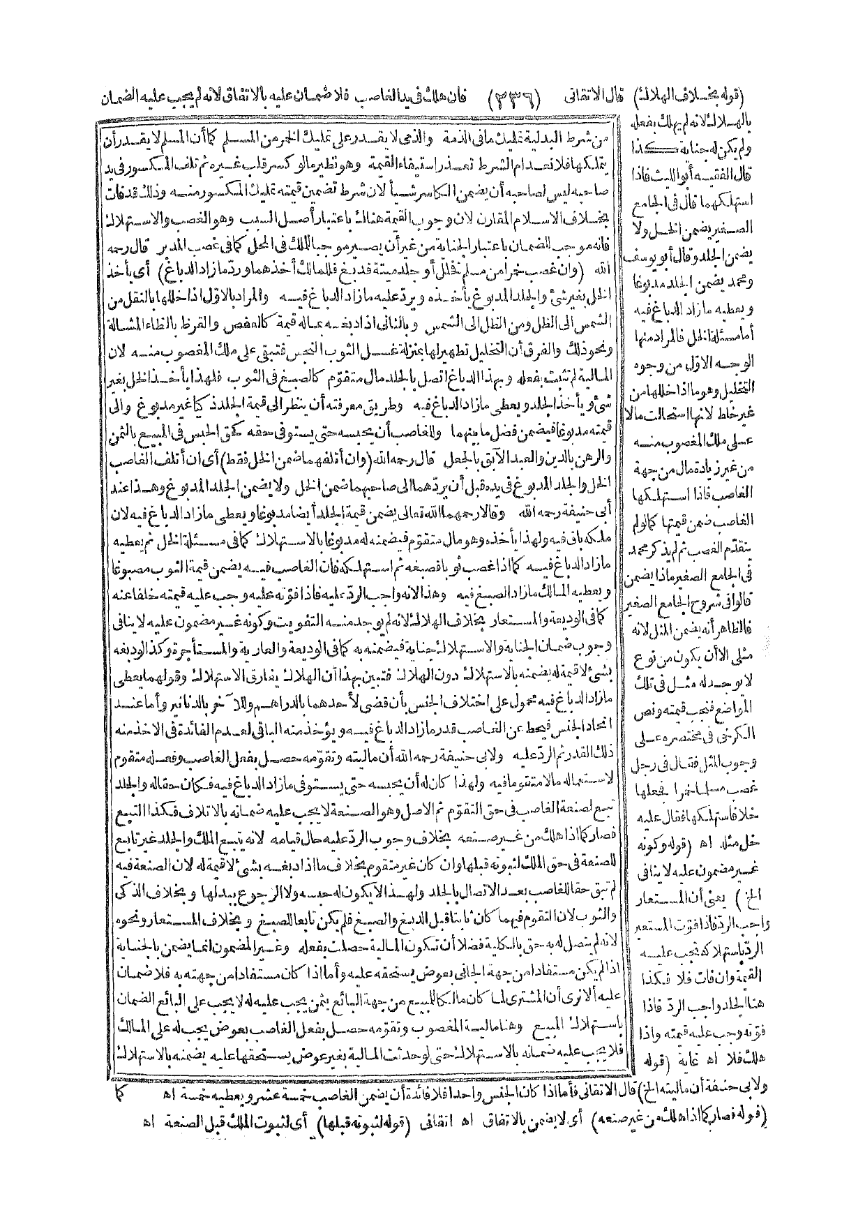 ـــــــــــــــــــــــــــــQقَوْلُهُ: بِخِلَافِ الْهَلَاكِ) قَالَ الْأَتْقَانِيُّ فَإِنْ هَلَكَ فِي يَدِ الْغَاصِبِ فَلَا ضَمَانَ عَلَيْهِ بِالِاتِّفَاقِ؛ لِأَنَّهُ لَمْ يَجِبْ عَلَيْهِ الضَّمَانُ بِالْهَلَاكِ؛ لِأَنَّهُ لَمْ يَهْلَكْ بِفِعْلِهِ، وَلَمْ يَكُنْ لَهُ جِنَايَةٌ كَذَا قَالَ الْفَقِيهُ أَبُو اللَّيْثِ فَإِذَا اسْتَهْلَكَهُمَا قَالَ فِي الْجَامِعِ الصَّغِيرِ يَضْمَنُ الْخَلَّ، وَلَا يَضْمَنُ الْجِلْدَ، وَقَالَ أَبُو يُوسُفَ وَمُحَمَّدٌ يَضْمَنُ الْجِلْدَ مَدْبُوغًا وَيُعْطِيهِ مَا زَادَ الدِّبَاغُ فِيهِ أَمَّا مَسْأَلَةُ الْخَلِّ فَالْمُرَادُ مِنْهَا الْوَجْهُ الْأَوَّلُ مِنْ وُجُوهِ التَّخْلِيلِ، وَهُوَ مَا إذَا خَلَّلَهَا مِنْ غَيْرِ خَلْطٍ؛ لِأَنَّهَا اسْتَحَالَتْ مَالًا عَلَى مِلْكِ الْمَغْصُوبِ مِنْهُ مِنْ غَيْرِ زِيَادَةِ مَالٍ مِنْ جِهَةِ الْغَاصِبِ فَإِذَا اسْتَهْلَكَهَا الْغَاصِبُ ضَمِنَ قِيمَتَهَا كَمَا لَوْ لَمْ يَتَقَدَّمْ الْغَصْبُ ثُمَّ لَمْ يَذْكُرْ مُحَمَّدٌ فِي الْجَامِعِ الصَّغِيرِ مَاذَا يَضْمَنُ قَالُوا فِي شُرُوحِ الْجَامِعِ الصَّغِيرِ فَالظَّاهِرُ أَنَّهُ يَضْمَنُ الْمِثْلَ؛ لِأَنَّهُ مِثْلِيٌّ إلَّا أَنْ يَكُونَ مِنْ نَوْعٍ لَا يُوجَدُ لَهُ مِثْلٌ فِي تِلْكَ الْمَوَاضِعِ فَتَجِبُ قِيمَتُهُ وَنَصَّ الْكَرْخِيُّ فِي مُخْتَصَرِهِ عَلَى وُجُوبِ الْمِثْلِ فَقَالَ فِي رَجُلٍ غَصَبَ مُسْلِمًا خَمْرًا فَجَعَلَهَا خَلًّا فَاسْتَهْلَكَهَا فَقَالَ عَلَيْهِ خَلٌّ مِثْلُهُ. اهـ. (قَوْلُهُ: وَكَوْنُهُ غَيْرَ مَضْمُونٍ عَلَيْهِ لَا يُنَافِي إلَخْ) يَعْنِي أَنَّ الْمُسْتَعَارَ وَاجِبُ الرَّدِّ فَإِذَا فَوَّتَ الْمُسْتَعِيرُ الرَّدَّ بِاسْتِهْلَاكِهِ تَجِبُ عَلَيْهِ الْقِيمَةُ، وَإِنْ فَاتَ فَلَا فَكَذَا هُنَا الْجِلْدُ وَاجِبُ الرَّدِّ فَإِذَا فَوَّتَهُ وَجَبَ عَلَيْهِ قِيمَتُهُ، وَإِذَا هَلَكَ فَلَا. اهـ غَايَةٌ. (قَوْلُهُ: وَلِأَبِي حَنِيفَةَ أَنَّ مَالِيَّتَهُ إلَخْ) قَالَ الْأَتْقَانِيُّ فَأَمَّا إذَا كَانَ الْجِنْسُ وَاحِدًا فَلَا فَائِدَةَ أَنْ يَضْمَنَ الْغَاصِبُ خَمْسَةَ عَشَرَ وَيُعْطِيهِ خَمْسَةً. اهـ. (قَوْلُهُ: فَصَارَ كَمَا إذَا هَلَكَ مِنْ غَيْرِ صُنْعِهِ) أَيْ لَا يَضْمَنُ بِالِاتِّفَاقِ. اهـ. أَتْقَانِيٌّ. (قَوْلُهُ: لِثُبُوتِهِ قَبْلَهَا) أَيْ لِثُبُوتِ الْمِلْكِ قَبْلَ الصَّنْعَةِ. اهـ.