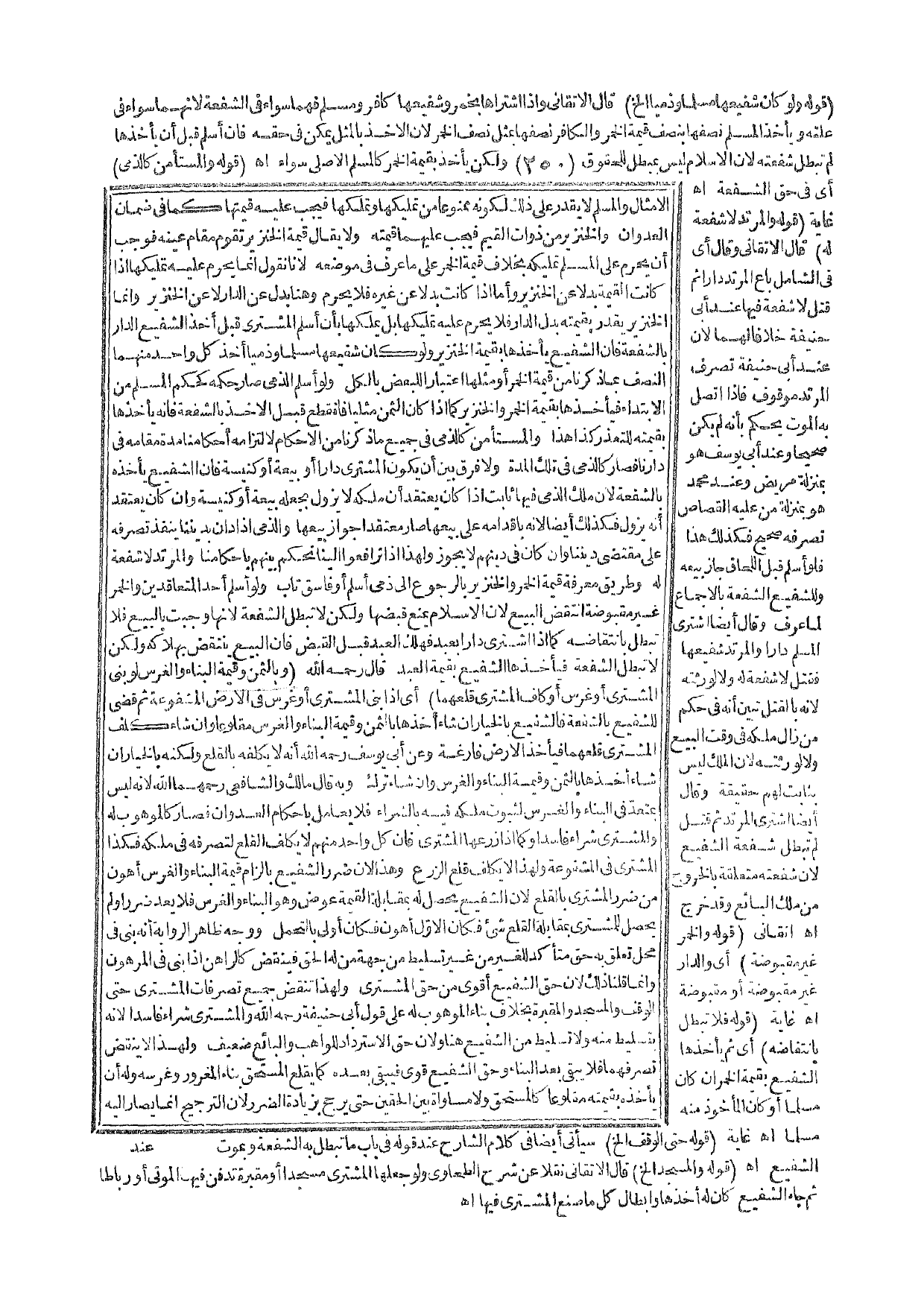 ـــــــــــــــــــــــــــــ Q ( قَوْلُهُ: وَلَوْ كَانَ شَفِيعُهَا مُسْلِمًا، وَذِمِّيًّا إلَخْ) قَالَ الْأَتْقَانِيُّ: وَإِذَا اشْتَرَاهَا بِخَمْرٍ وَشَفِيعُهَا كَافِرٌ، وَمُسْلِمٌ فَهُمَا سَوَاءٌ فِي الشُّفْعَةِ؛ لِأَنَّهُمَا سَوَاءٌ فِي عِلَّتِهِ وَيَأْخُذُ الْمُسْلِمُ نِصْفَهَا بِنِصْفِ قِيمَةِ الْخَمْرِ وَالْكَافِرُ نِصْفَهَا بِمِثْلِ نِصْفِ الْخَمْرِ؛ لِأَنَّ الْأَخْذَ بِالْمِثْلِ يُمْكِنُ فِي حَقِّهِ فَإِنْ أَسْلَمَ قَبْلَ أَنْ يَأْخُذَهَا لَمْ تَبْطُلْ شُفْعَتُهُ؛ لِأَنَّ الْإِسْلَامَ لَيْسَ بِمُبْطِلٍ لِلْحُقُوقِ، وَلَكِنْ يَأْخُذُ بِقِيمَةِ الْخَمْرِ كَالْمُسْلِمِ الْأَصْلِيِّ سَوَاءٌ. اهـ.