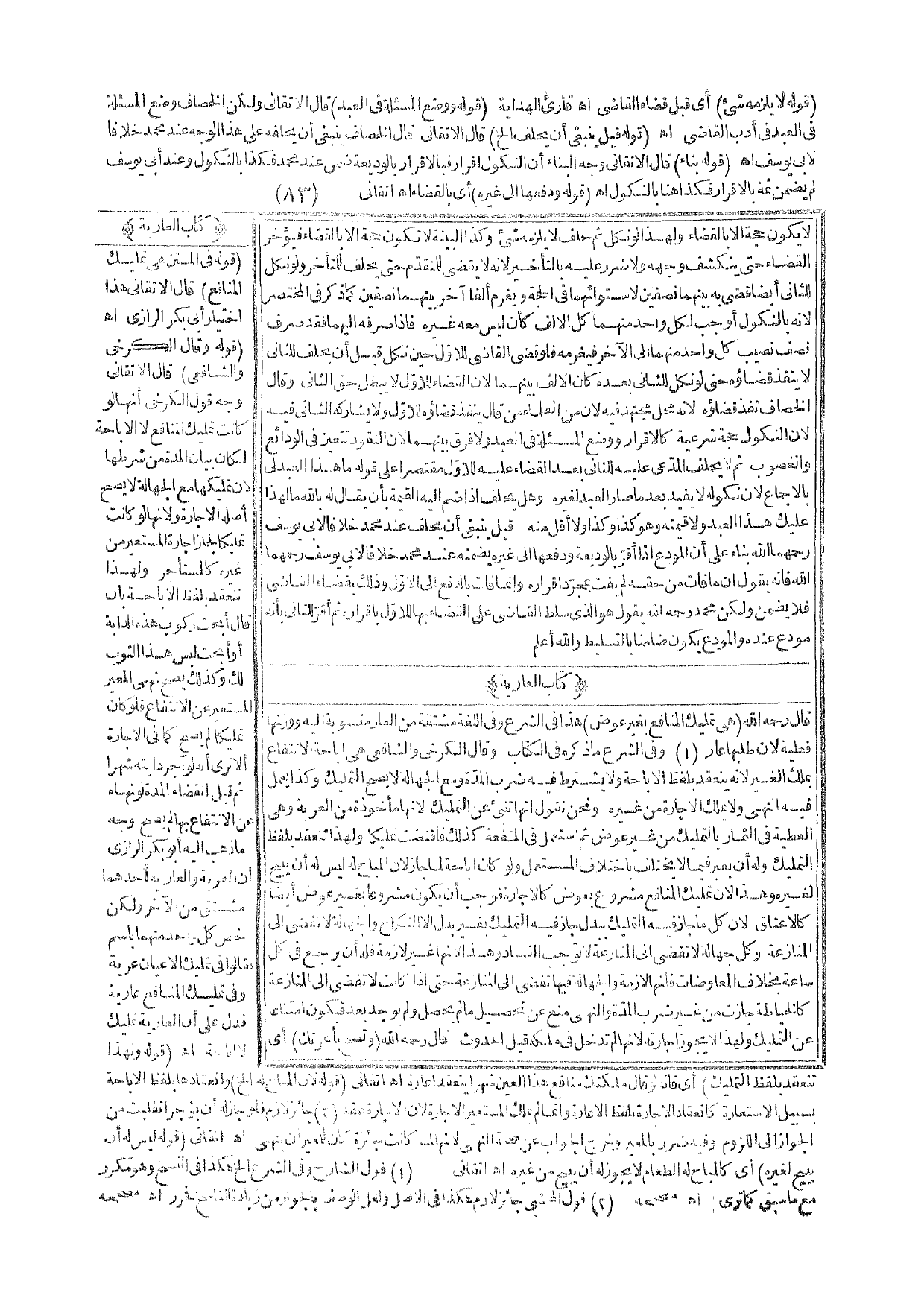 (كِتَابُ الْعَارِيَّةُ) (قَوْلُهُ فِي الْمَتْنِ هِيَ تَمْلِيكُ الْمَنَافِعِ) قَالَ الْأَتْقَانِيُّ هَذَا اخْتِيَارُ أَبِي بَكْرٍ الرَّازِيّ. اهـ. (قَوْلُهُ وَقَالَ الْكَرْخِيُّ وَالشَّافِعِيُّ) قَالَ الْأَتْقَانِيُّ وَجْهُ قَوْلِ الْكَرْخِيِّ أَنَّهَا لَوْ كَانَتْ تَمْلِيكَ الْمَنَافِعِ لَا الْإِبَاحَةَ لَكَانَ بَيَانُ الْمُدَّةِ مِنْ شَرْطِهَا؛ لِأَنَّ تَمْلِيكَهَا مَعَ الْجَهَالَةِ لَا يَصِحُّ، أَصْلُهُ الْإِجَارَةُ، وَلِأَنَّهَا لَوْ كَانَتْ تَمْلِيكًا لَجَازَ إجَارَةُ الْمُسْتَعِيرِ مِنْ غَيْرِهِ كَالْمُسْتَأْجِرِ، وَلِهَذَا تَنْعَقِدُ بِلَفْظِ الْإِبَاحَةِ بِأَنْ قَالَ أَبَحْت رُكُوبَ هَذِهِ الدَّابَّةِ أَوْ أَبَحْت لُبْسَ هَذَا الثَّوْبِ لَك، وَكَذَلِكَ يَصِحُّ نَهْيُ الْمُعِيرِ الْمُسْتَعِيرَ عَنْ الِانْتِفَاعِ فَلَوْ كَانَ تَمْلِيكًا لَمْ يَصِحَّ كَمَا فِي الْإِجَارَةِ. أَلَا تَرَى أَنَّهُ لَوْ آجَرَ دَابَّتَهُ شَهْرًا ثُمَّ قَبْلَ انْقِضَاءِ الْمُدَّةِ لَوْ نَهَاهُ عَنْ الِانْتِفَاعِ بِهَا لَمْ يَصِحَّ. وَجْهُ مَا ذَهَبَ إلَيْهِ أَبُو بَكْرٍ الرَّازِيّ أَنَّ الْعَرِيَّةَ وَالْعَارِيَّةَ أَحَدُهُمَا مُشْتَقٌّ مِنْ الْآخَرِ وَلَكِنْ خُصَّ كُلُّ وَاحِدٍ مِنْهُمَا بِاسْمٍ فَقَالُوا فِي تَمْلِيكِ الْأَعْيَانِ عَرِيَّةٌ وَفِي تَمْلِيكِ الْمَنَافِعِ عَارِيَّةٌ فَدَلَّ عَلَى أَنَّ الْعَارِيَّةُ تَمْلِيكٌ لَا إبَاحَةٌ اهـ.