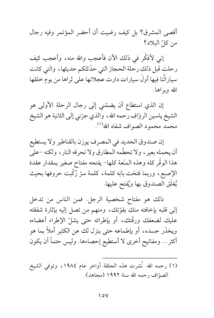 (¬1) رحمه الله. نُشرت هذه الحلقة أواخر عام 1984، وتوفي الشيخ الصوّاف رحمه الله سنة 1992 (مجاهد).