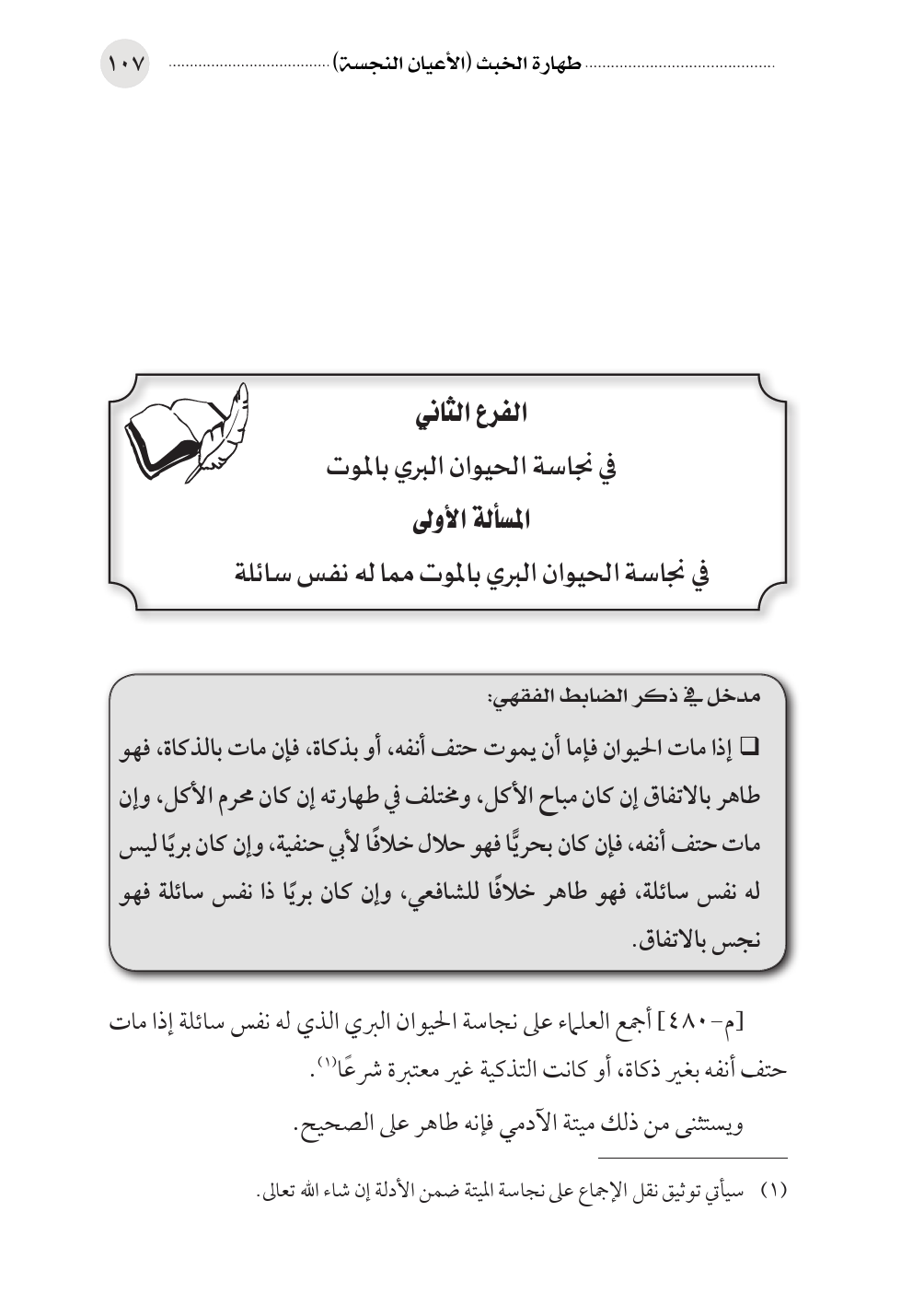 (¬١) سيأتي توثيق نقل الإجماع على نجاسة الميتة ضمن الأدلة إن شاء الله تعالى.